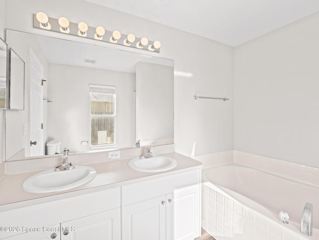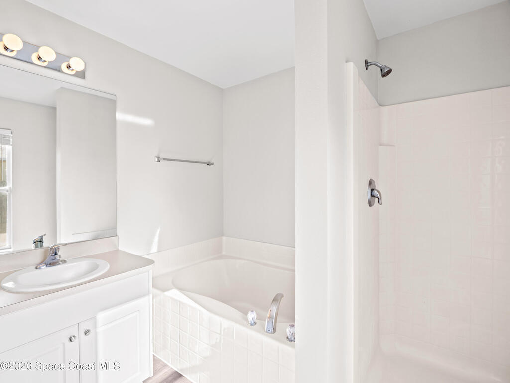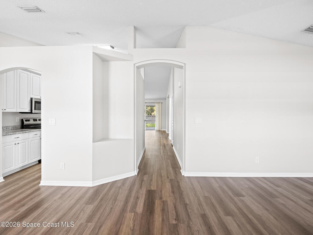 This 3bed/2bath home, located in Cypress Woods community, has a front porch for relaxing, and a fenced backyard with covered lanai. Home has just been painted on the inside. The interior features vaulted ceilings, a split floor plan, newer lighting, and ceiling fans. The living areas have vinyl plank flooring and NEW carpet will be installed before closing. There is a laundry room for convenience. The updated kitchen features newer cabinetry, granite countertops with a wrap around breakfast bar, stainless steel appliances and a pantry .The master suite has a ceiling fan and walk-in closet, and the bathroom has dual sinks, a tub and shower. This home has a newer water heater and A/C. The community has a playground and is located near shopping, entertainment, the beaches, Kennedy Space Center, and numerous technology companies. Located close to I-95, US-1, and the Beachline. NEW ROOF IN 2023!!!