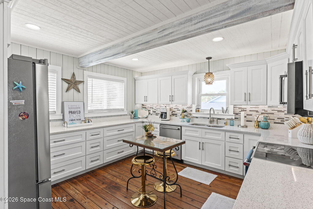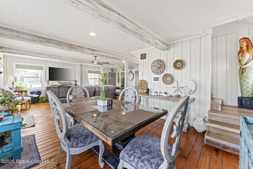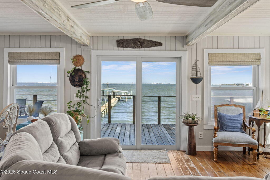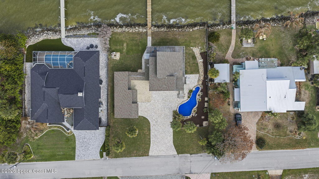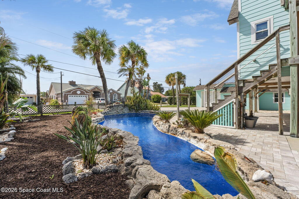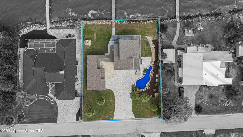 If Florida had a home, this would be it. Completely renovated, this elevated stilt home sits directly on the Banana River with wide open water views and direct access to Port Canaveral. Enjoy everything the Space Coast has to offer, from dolphins and manatees in your backyard to rocket launches overhead. A private dock with boat lift makes getting out on the water a breeze. Inside, the home offers 3 bedrooms, 2 full baths, and 2 half baths with an open layout centered around a chef's kitchen featuring quartz countertops and stainless steel appliances, flowing into the main living and dining areas with the river views front and center. The primary suite includes a private balcony overlooking the water. Outside, enjoy a pool, stone fireplace, and a paver driveway set within a well maintained yard. A detached air conditioned flex space with river views offers options for an office, studio, or additional living area. Well updated and positioned for true waterfront living.