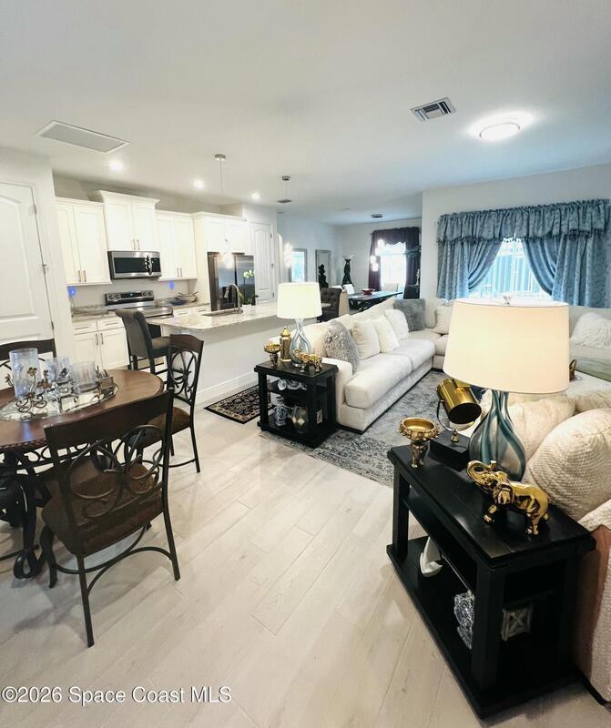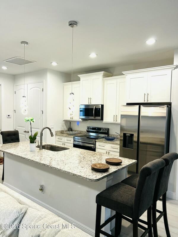 Custom-built in 2022, this beautifully designed 3-bedroom, 2-bath home sits on a desirable 0.24-acre corner lot, offering both privacy and scenic surroundings. Thoughtfully upgraded throughout, the home features 42-inch white cabinetry with crown molding and soft-close drawers, along with granite countertops in the kitchen and both bathrooms.Fully furnished :furniture available for purchase separately.Enjoy a modern, cohesive look with plank-style wood-look tile flooring throughout. The bathrooms showcase upgraded tile work extending to the ceilings, creating a sleek and luxurious feel. The exterior is equally impressive with stacked stone accents that enhance curb appeal.The kitchen comes fully equipped with stainless steel appliances, making this home truly move-in ready. A perfect blend of style, quality, and location