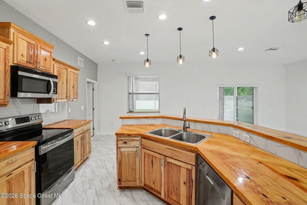 ((( UPDATED & UPGRADED ''CBS'' HOUSE w/AMAZING UNATTACHED GARAGE, HIGH ELEVATION & NO HOA ))) Built in 2020 in an older but convenient neighborhood in West Melbourne close to all the amenities including Police foundation park! Open & split floor plan with back screened patio w/ beautiful views of the partially fenced back yard. IMPACT GLASS WINDOWS & DOORS. ROOF & A/C ARE 2020. NEW FLOOR & BATHROOM TILE IN 2026. NEW DISHWASHER IN 2026. (APROX 6 UNDERCOVER SPACES TOTAL) The house garage is oversized & the unattached garage was built with 6 inches of concrete to make it ''car lift ready'' and also is built to withstand 170 MPH winds. (6-7 undercover spaces total)...NEWER HOUSE + CONVENIENCE + NO HOA = LA VITA!!