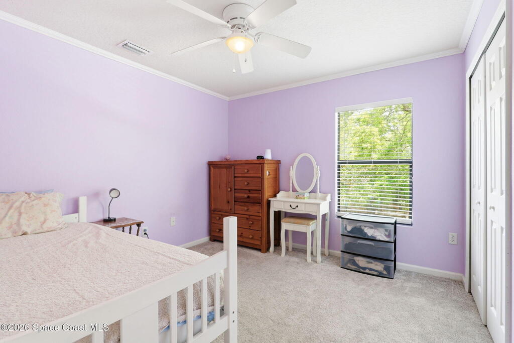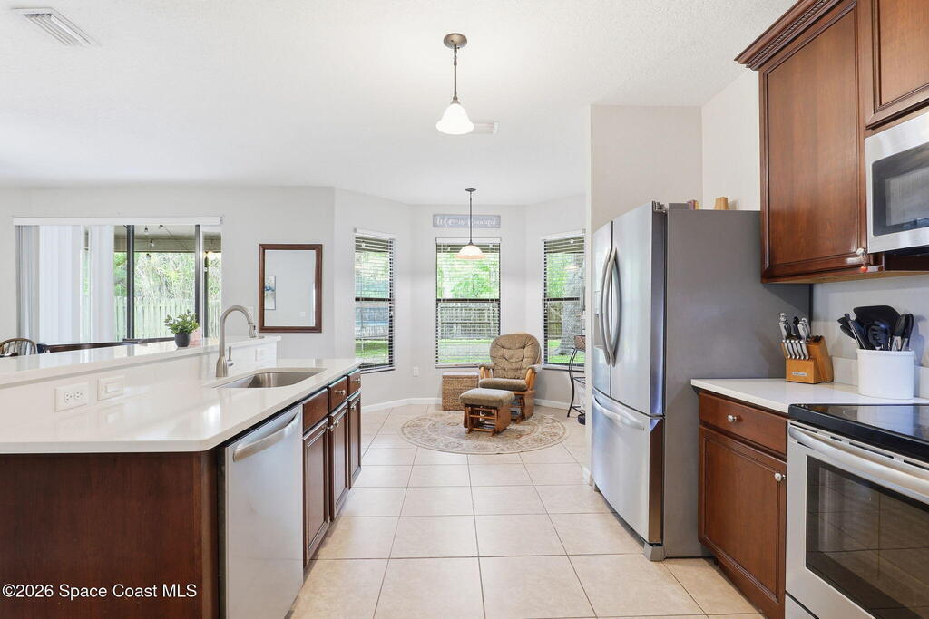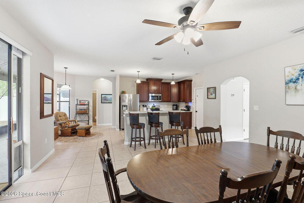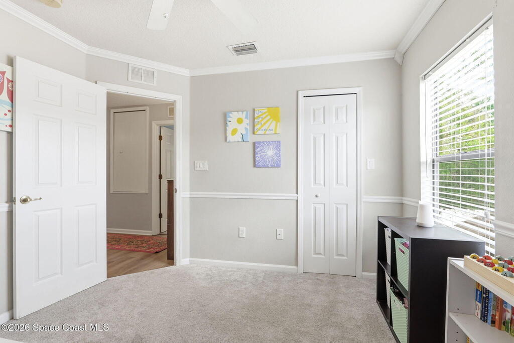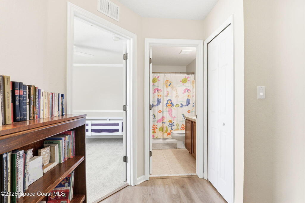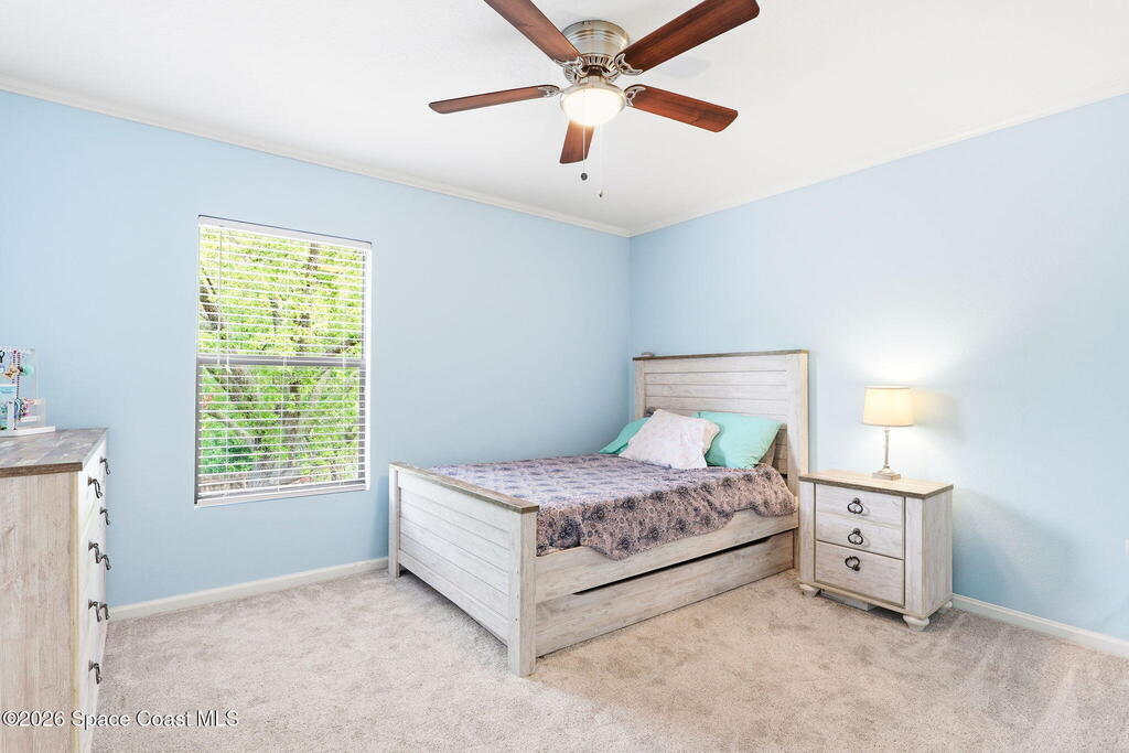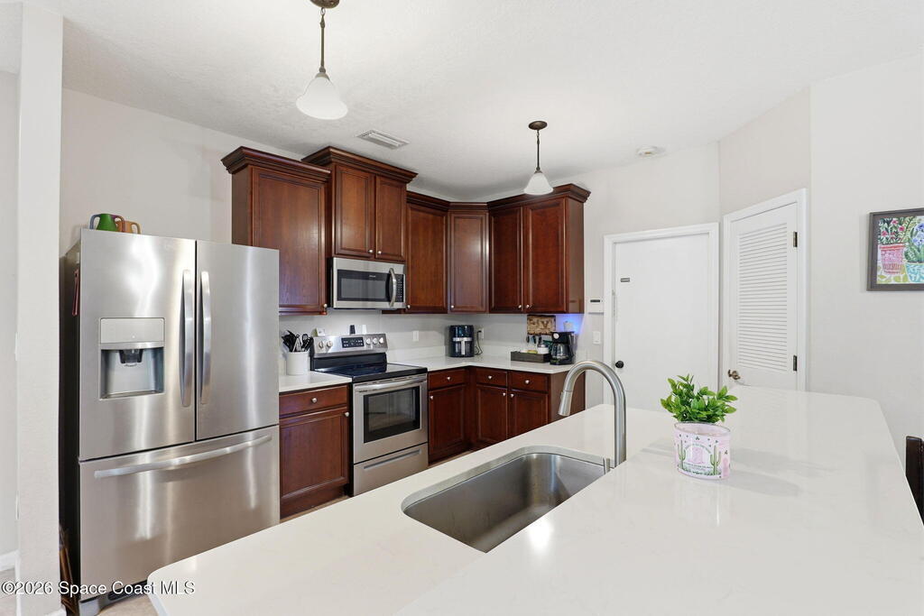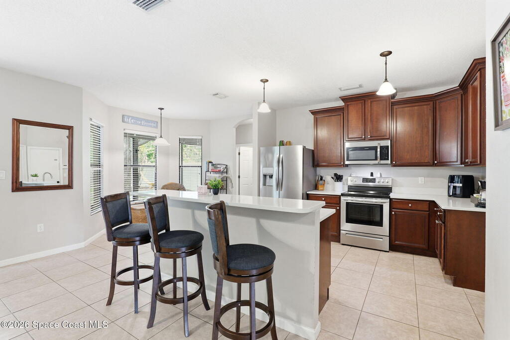 Looking for a Titusville home that fits real life? This one gives you options. With 5 bedrooms, 3 full baths, and flexible bonus areas upstairs and down, the layout fits everything from larger households to guests, hobbies, and work-from-home days. The kitchen is set up for both cooking and gathering, with quartz countertops, stainless appliances, walk-in pantry, a full dining area, breakfast nook, and island seating for 3-4. Off the kitchen, the downstairs office sits next to a full bath, so it also works well for a private guest setup on the main floor. Upstairs, the remaining bedrooms connect around a nearly 12x20 loft with windows and a closet that can serve as a playroom, gym, or second hangout spot. The primary suite gives you the biggest bedroom in the home, plus vaulted ceilings, a walk-in closet, dual sinks with a vanity seat, and separate tub and shower. Outside, a screened porch and fenced yard add even more to enjoy, and the roof and water heater are only 3 years old.