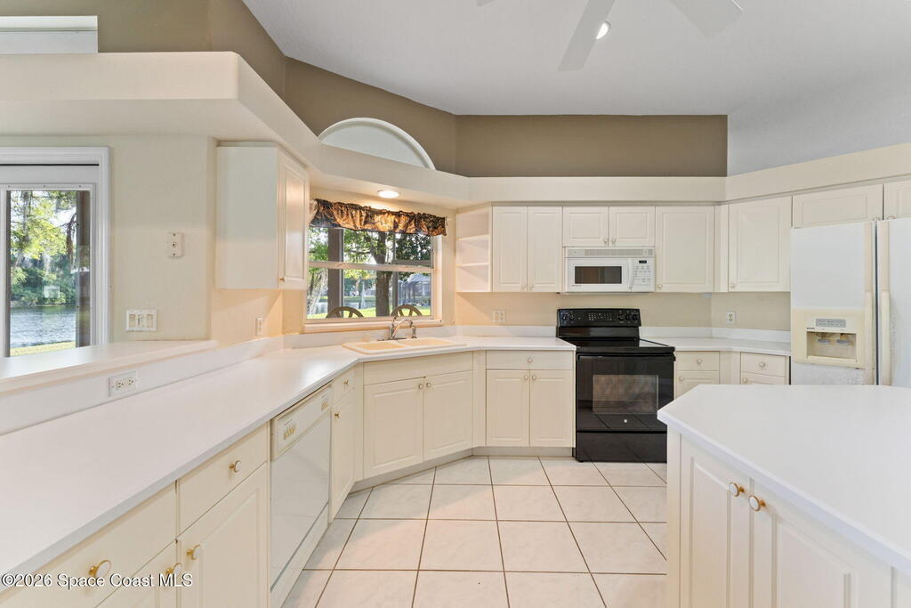 This West Melbourne lakefront home is ready for its next owner! Location is everything, and this one checks all of the boxes. Tucked away in the gated neighborhood of The Falls at Sheridan, this home blends the lifestyle of a quiet, calm neighborhood with the convenience of being 5 minutes from I-95 and 20 minutes to the beach. The mature trees, picturesque views of the lake, and over 1/3 of an acre combine for truly tranquil living. Boasting over 2200 square feet, two separate living spaces, and a split bedroom plan, this home has plenty of room to spread out! The oversized primary suite is complete with a view of the lake, a large walk in closet, and a bathroom with soaking tub and shower. Outside, a nearly 400 sq ft covered and screened back porch is a blank canvas, and is ready to be used to entertain or to relax! If you've been looking for a spacious home in West Melbourne, this could be the one for you!