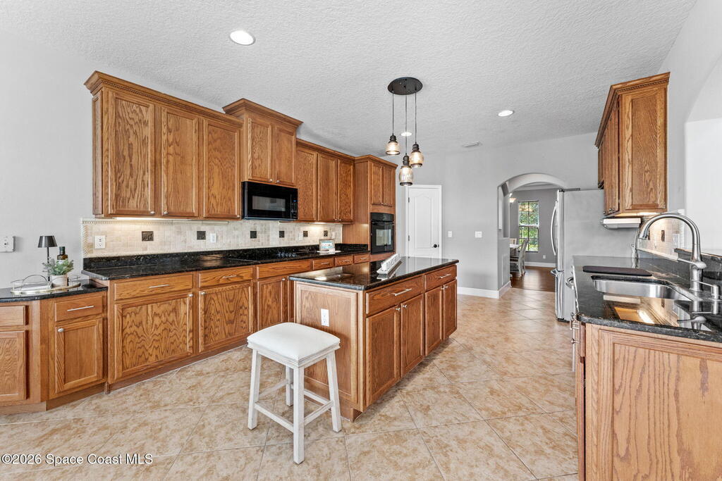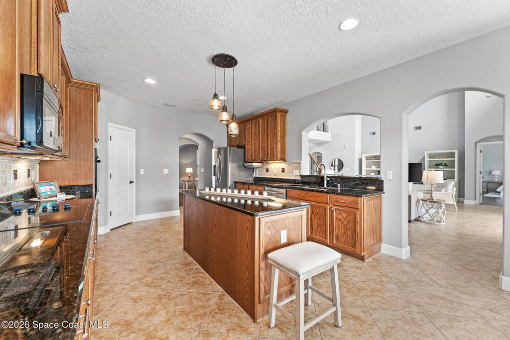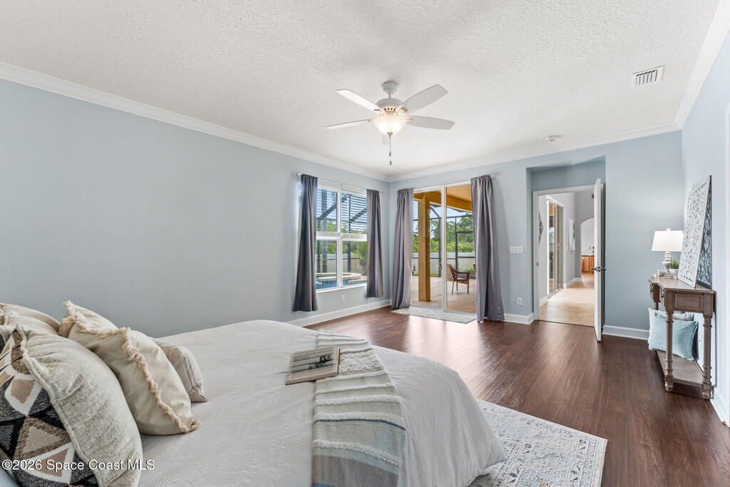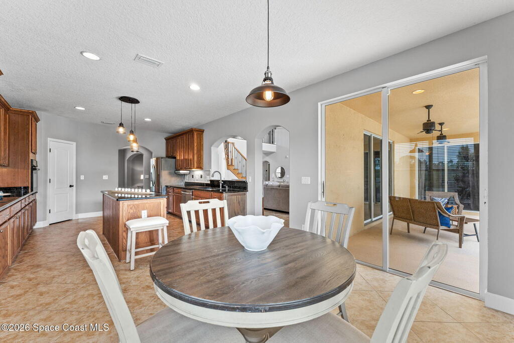 Tucked at the end of a quiet cul-de-sac inside a gated community, this 5-bedroom, 3-bath stunner delivers space, style, and serious Florida living. Vaulted ceilings and tile flooring set the tone, while plantation shutters add just the right touch of charm. The kitchen is built to gather-featuring a breakfast bar, island, and eat-in nook that flows effortlessly for everyday living or entertaining. A smart split-bedroom layout offers privacy, and the oversized primary suite boasts walk-in closets for days. Step outside to your private escape: a heated, in-ground pool and spa wrapped in a screened enclosure with lanai ready for year-round relaxation. A smart thermostat keeps comfortable temps in check. Close to A-rated schools, dining, shopping, and loaded community amenities-this one hits different!