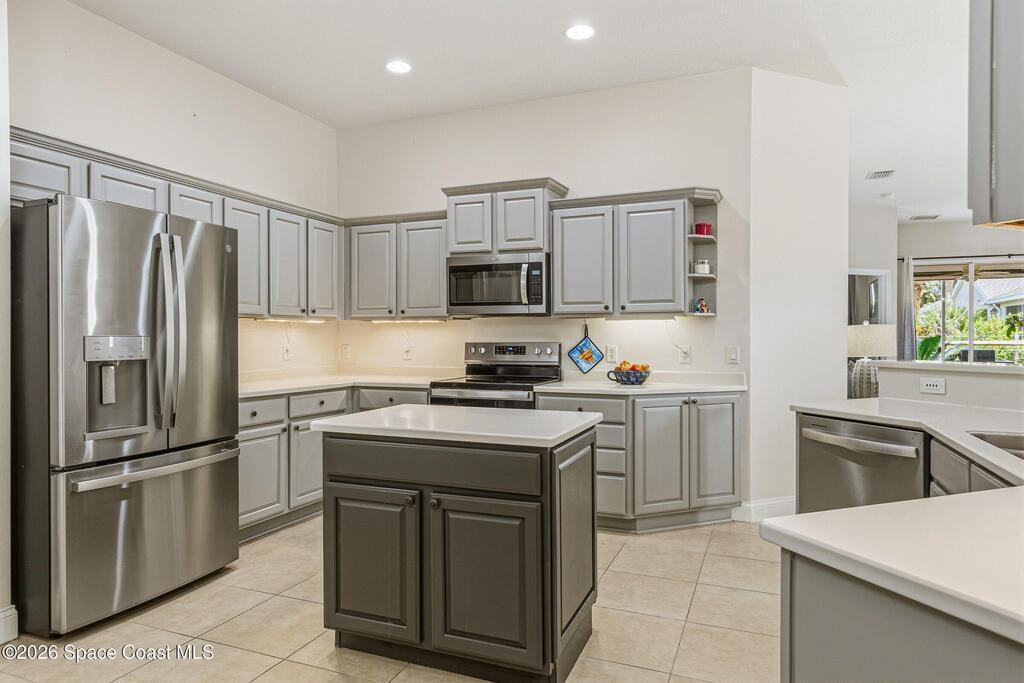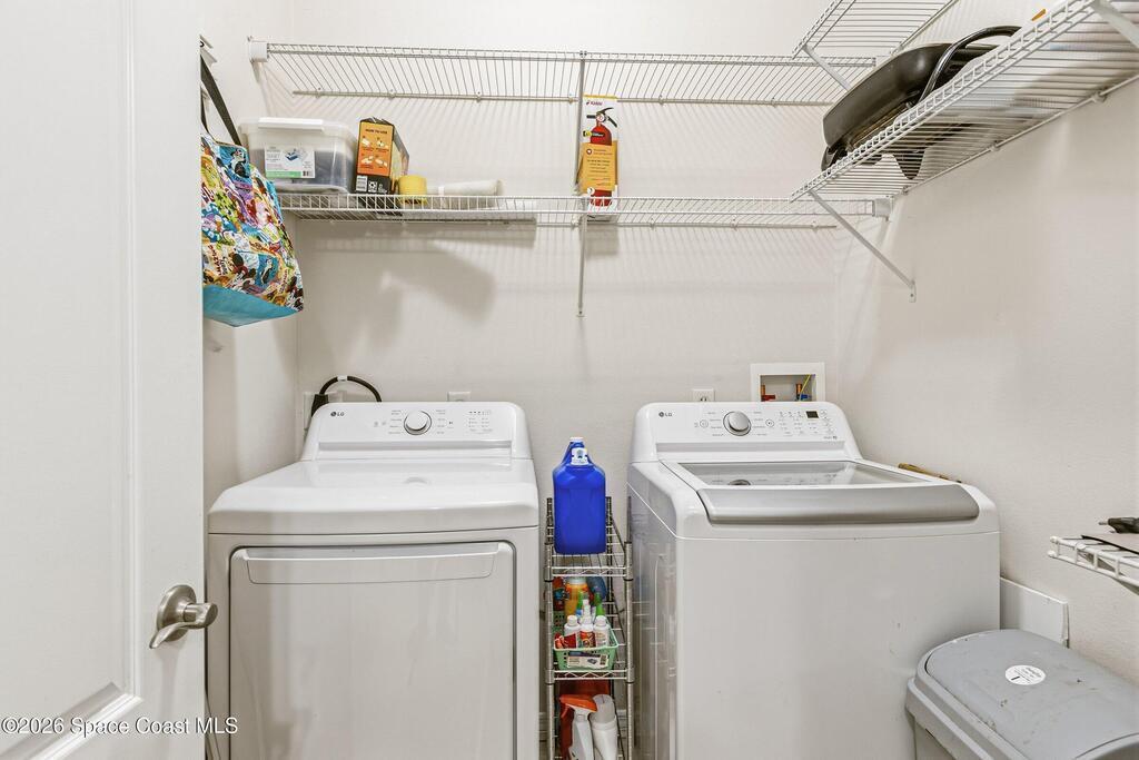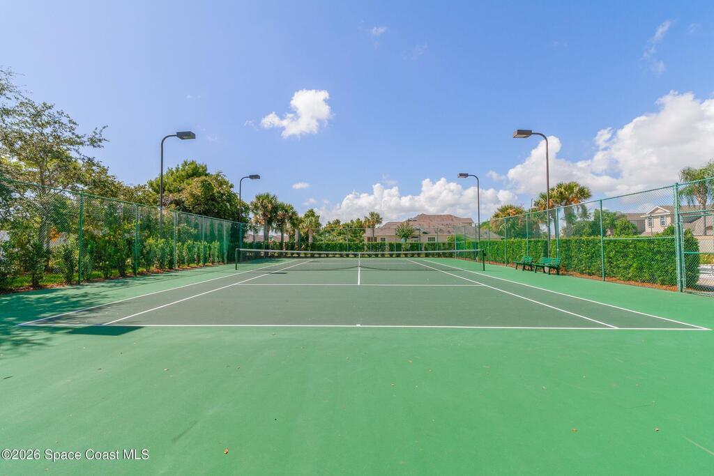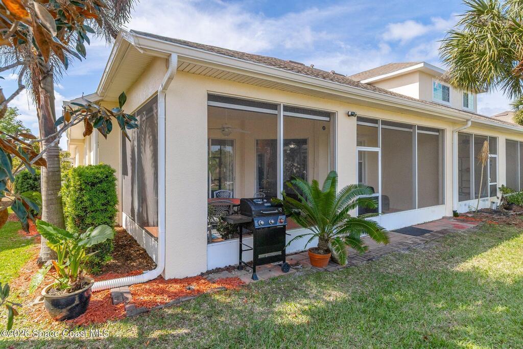 Welcome to easy Florida living in the gated community of Capron Ridge in Viera. This well-maintained one-story end unit townhome backs to beautiful preserve sanctuary, offering privacy & peaceful views. Enjoy the large covered, screened lanai--perfect for relaxing or entertaining. Home features 3BD + flexible bonus room ideal for an ofc/den, along w/ 2BA & 2car garage. Open layout includes upgraded plank laminate flooring in the main living areas, carpet in BD. (2022), Plantation Shutters & large great room design. Kitchen is updated w/ stainless steel appliances (2024), 42-inch cabinets, Corian counters & kitchen island. Washer & dryer (2023) included for added convenience. Community offers resort-style amenities including a gated entrance, pool, clubhouse, fitness center, tennis, pickle ball & basketball courts, walking trails, & fishing piers throughout. Enjoy maintenance-free living in a serene, nature-filled setting. Only 15 min. to beaches, 5 shopping & dining & 40 to Orlando.