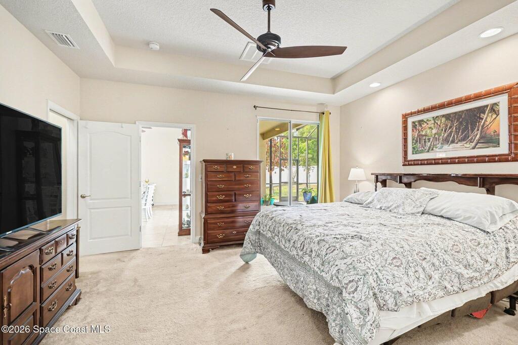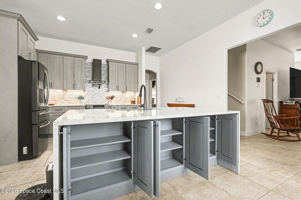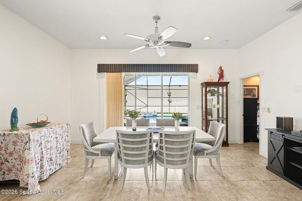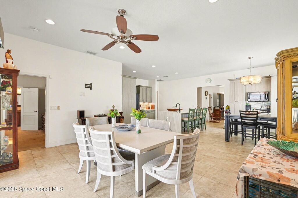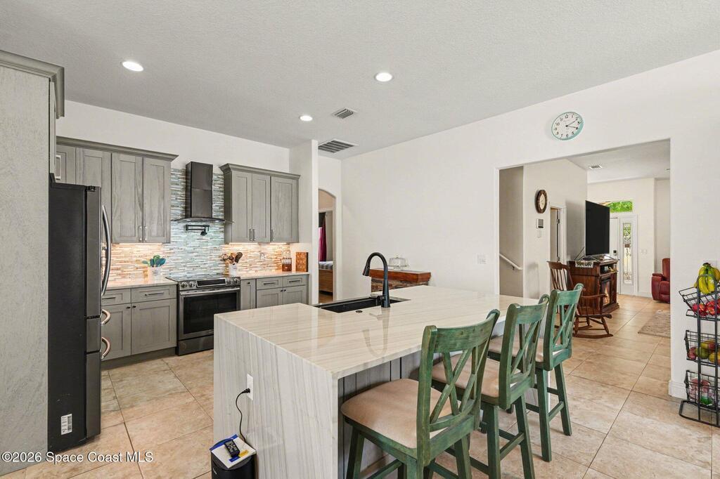 Enjoy significantly lower electric bills in this spectacular 4-bedroom pool home, built in 2013 and designed with both comfort and efficiency in mind. Soaring 10-foot ceilings and a bright, open-concept layout create a spacious yet inviting feel for everyday living and entertaining. Energy-saving features include a solar system with a retail value of $65,840 that the seller will pay off for the buyer at closing, plus a hybrid water heater. The kitchen features quartzite countertops, a stunning waterfall island, stainless steel appliances, a coffee/tea station, and an open connection to the dining area and pool view. The first floor offers three bedrooms, two full baths, and formal living and dining areas. The primary suite includes private sliders to the pool, dual granite vanities, a soaking tub, separate shower, and walk-in closet. Outside, enjoy an oversized lot, designated garden section, and screened saltwater heated pool and spa.
