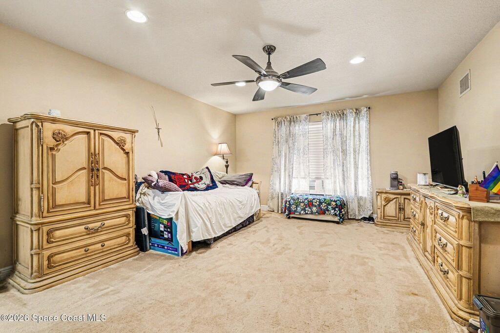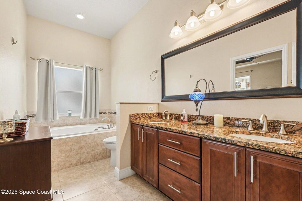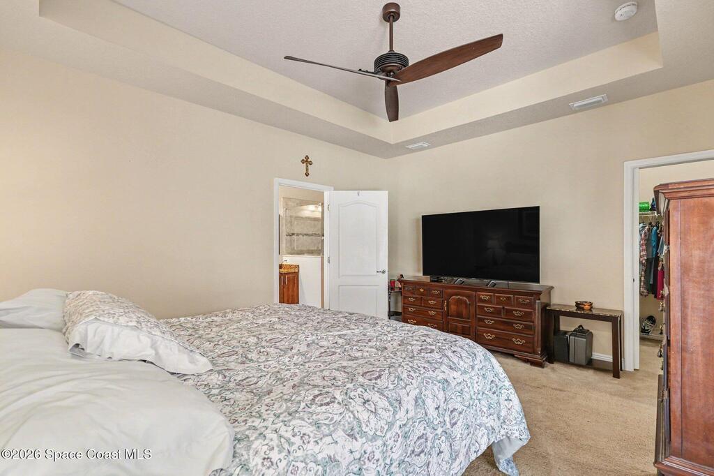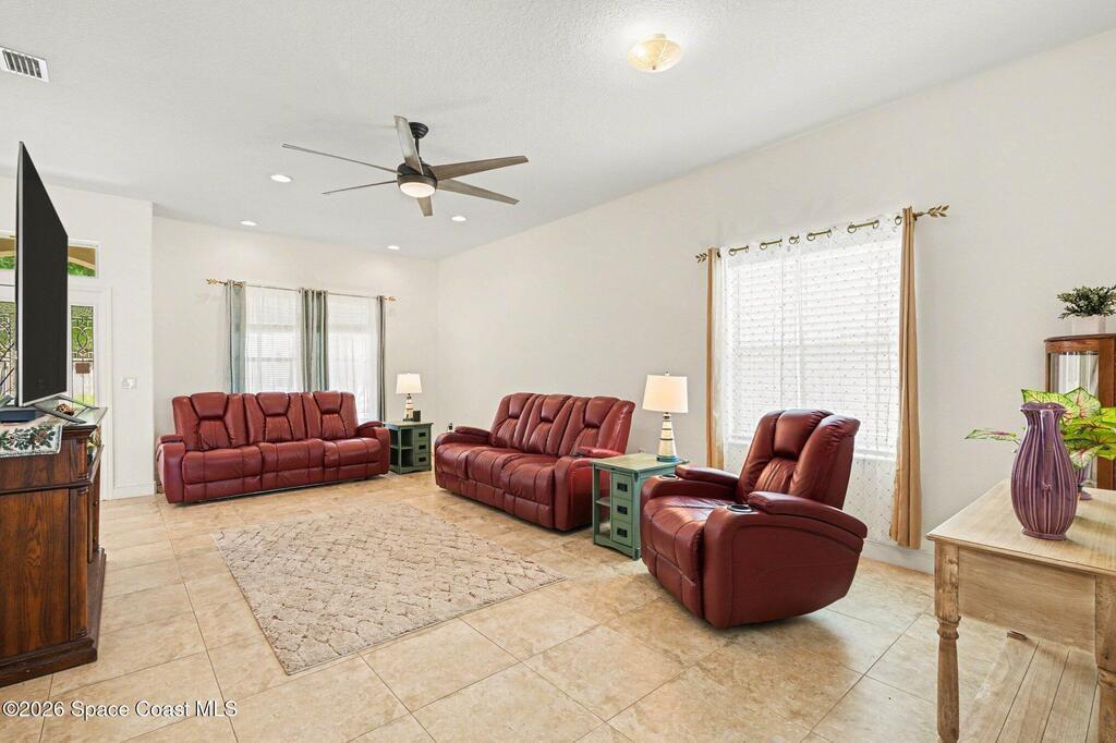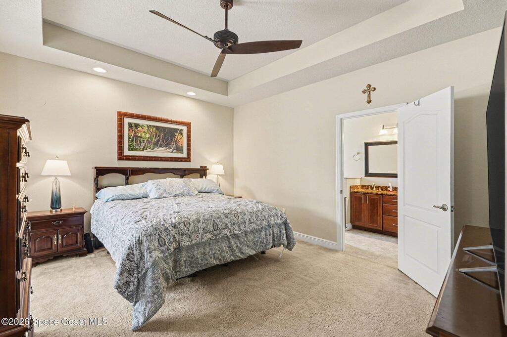 Enjoy significantly lower electric bills in this spectacular 4-bedroom pool home, built in 2013 and designed with both comfort and efficiency in mind. Soaring 10-foot ceilings and a bright, open-concept layout create a spacious yet inviting feel for everyday living and entertaining. Energy-saving features include a solar system with a retail value of $65,840 that the seller will pay off for the buyer at closing, plus a hybrid water heater. The kitchen features quartzite countertops, a stunning waterfall island, stainless steel appliances, a coffee/tea station, and an open connection to the dining area and pool view. The first floor offers three bedrooms, two full baths, and formal living and dining areas. The primary suite includes private sliders to the pool, dual granite vanities, a soaking tub, separate shower, and walk-in closet. Outside, enjoy an oversized lot, designated garden section, and screened saltwater heated pool and spa.