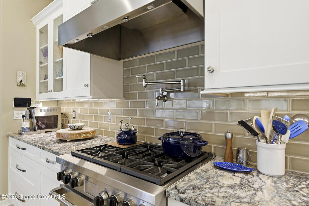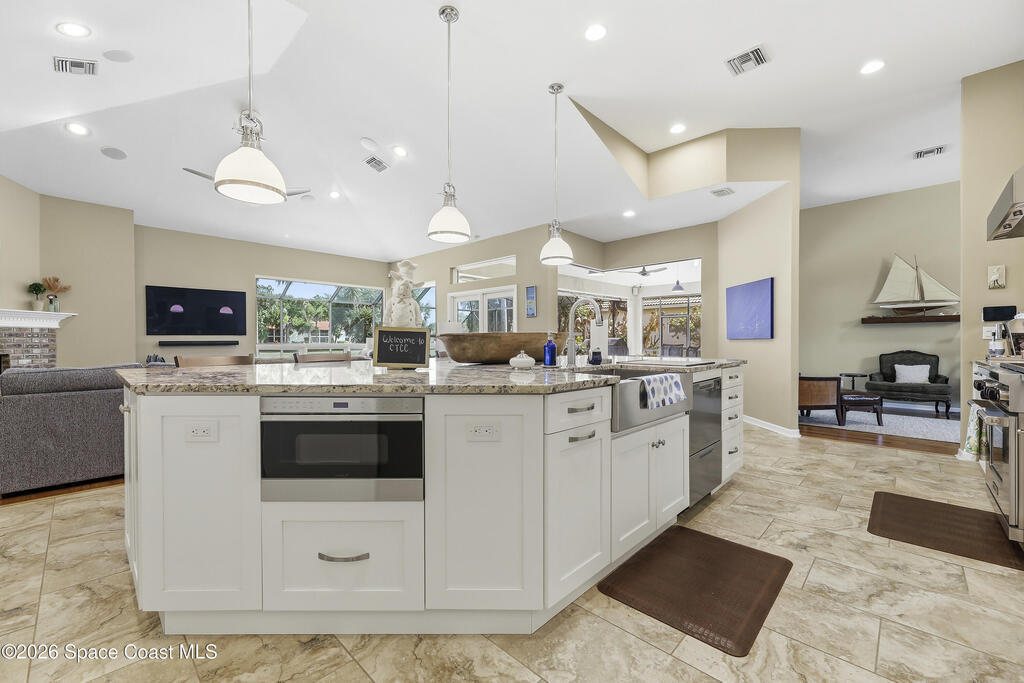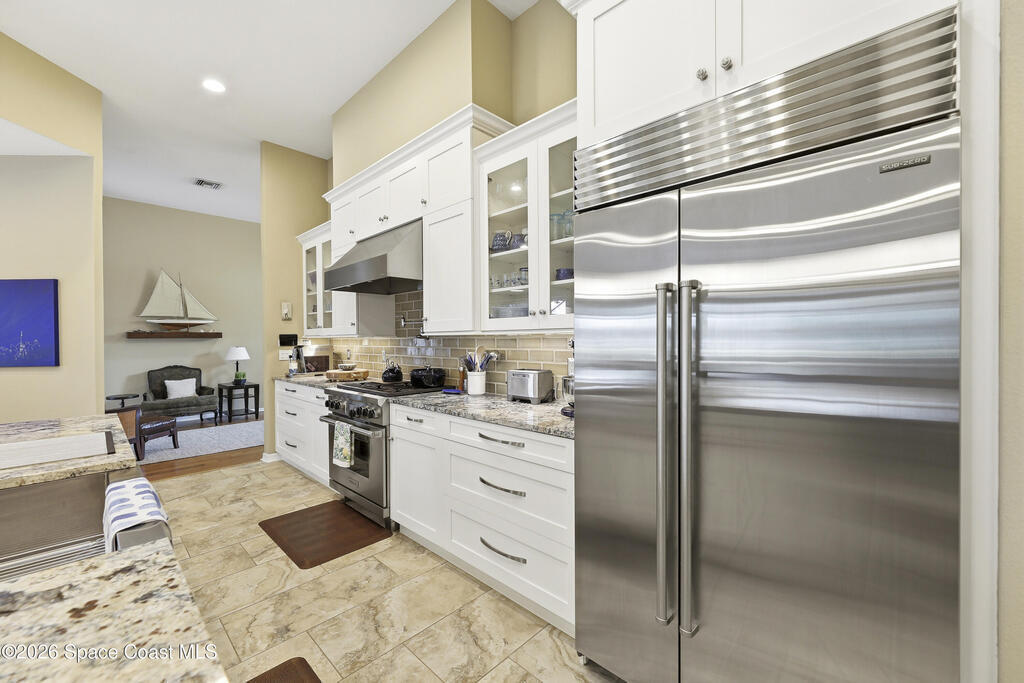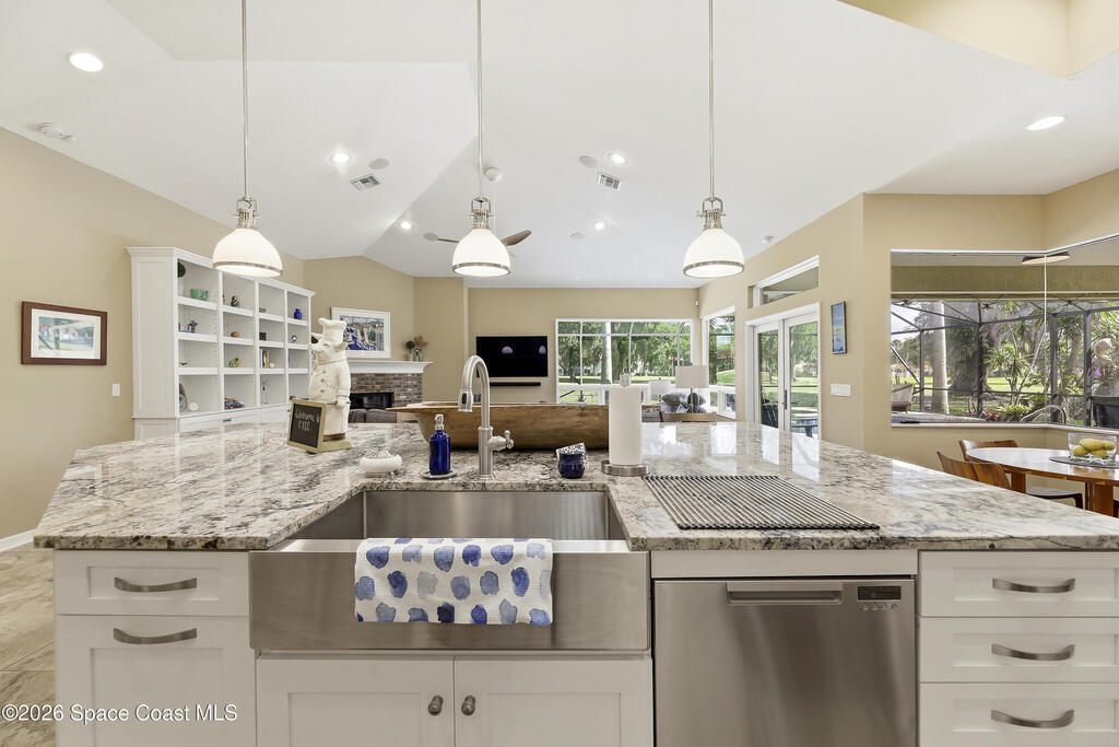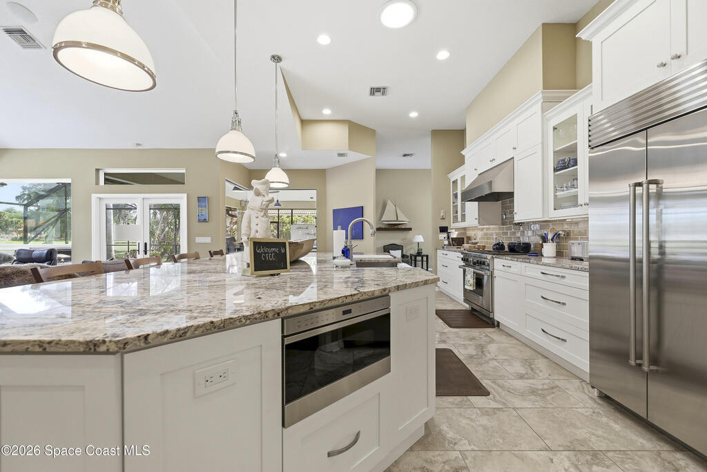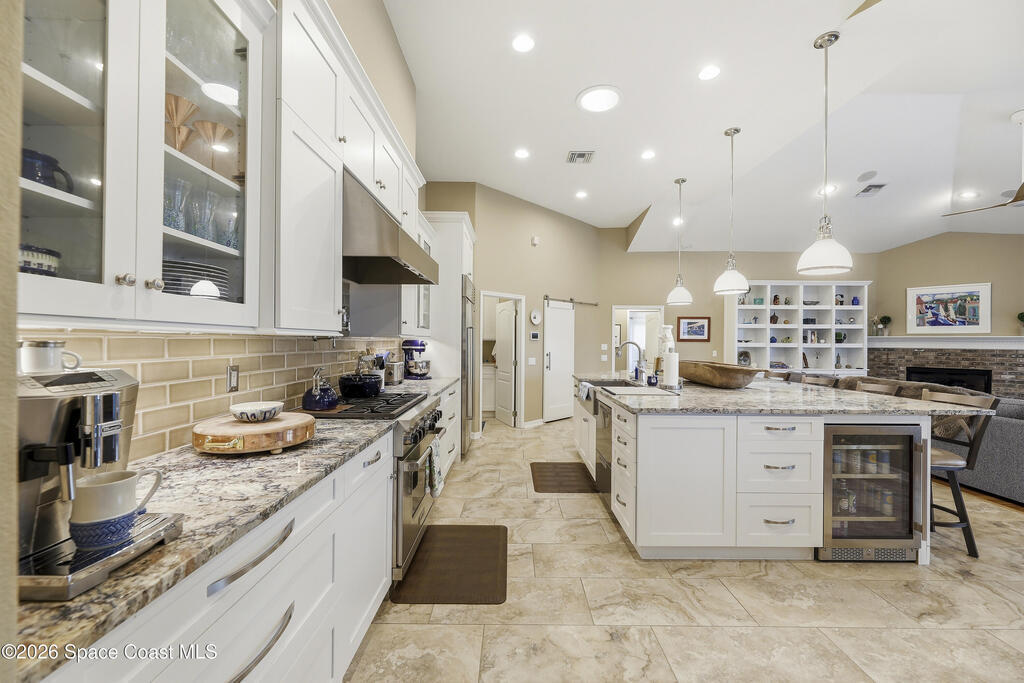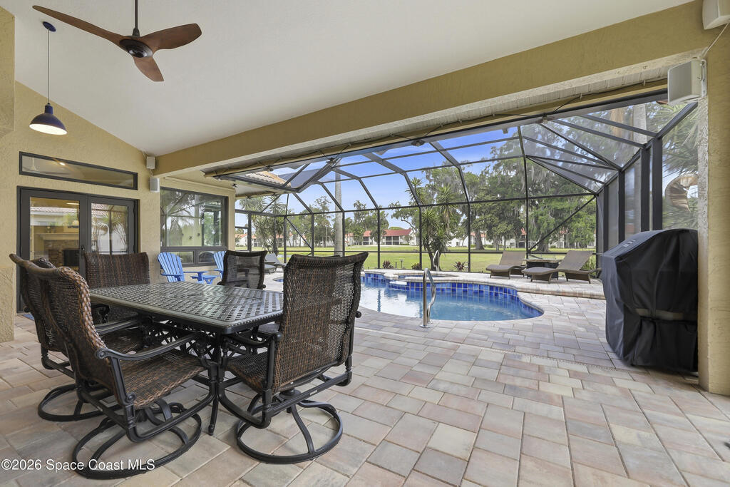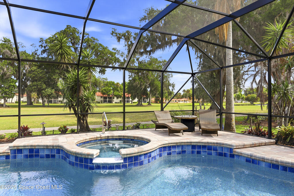 Exceptional golf course living at La Cita Golf & Country Club! Situated on the 9th hole, this beautifully maintained home offers smart features, a whole house generator, and elegant indoor-outdoor living. From the paver drive, tile roof, and lush landscaping to the grand double door entry, the curb appeal is impressive. Inside, soaring ceilings, abundant natural light, and spacious living areas create a warm and inviting feel. The gourmet kitchen features custom cabinetry, granite countertops, premium appliances, a large island, and farmhouse sink, all opening to the main living space with fireplace and custom built-ins. The spacious primary suite offers a spa-like bath with dual vanities, soaking tub, walk-in shower, and great storage. Enjoy the screened lanai, pool, spa, and peaceful golf course views in this beautiful home loaded with upgrades. Easy commute to NASA, Space X, Blue Origin, Orlando Theme Parks, Shopping, Entertainment, waterways, and the Ocean.