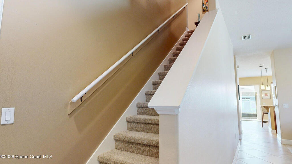 A LIFESTYLE SUNSMART HOME! This is a beautifully remodeled home located in the gated community of Pineda Ridge in the heart of Melbourne. The kitchen boasts granite counter tops, 42-inch cabinets with crown molding and backsplash. The spacious first floor master bedroom features NEW carpet, walk in closet, separate tub and frameless shower, and double vanity. Upstairs you will be greeted by a massive loft area that could be used as a 4th bedroom/office. Upstairs you will also find the second full bathroom along with the other two bedrooms. IMPACT WINDOWS were installed on the second story! Out back, you will find your oversized screened, tiled patio and a backyard with plenty of space for a pool! New vinyl fence - March 2026. New refrigerator, microwave and dishwasher - 2024. Stove and oven 2021. New LVP flooring in 2 bedrooms. New carpet. This energy efficient home has a solar hot water heater. Solar powered ventilation fans, double pane windows. A MUST SEE!