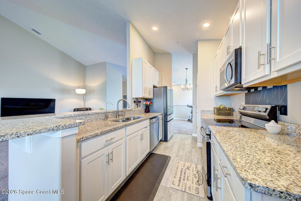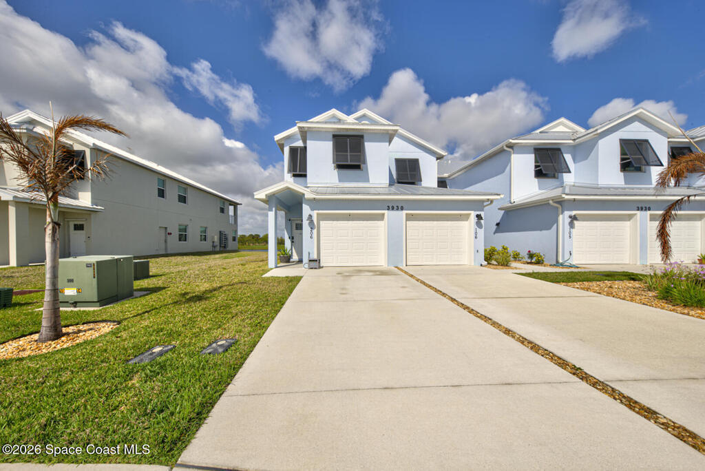 Immaculately Kept, Stunning Lake View, Concrete Block, Key West Townhome Style Condominium, w/ First Floor Entry, Unit on 2nd Floor, End Unit w/ 3 bedroom, 2 bath, Split Plan, 1801 sqft, attached 1 Car Garage & Driveway, built in 2023. So much to offer w/ its Open Concept, Vaulted Ceiling & 9ft Ceiling throughout, Gourmet Eat-in Kitchen w/custom 42' bright white cabinetry, granite countertops, stainless steel appliances, pantry, breakfast bar & nook, dining room, large open living room w/ soaring ceiling, large master suite w/ tiled walk-in shower & double sinks w/private laboratory. Guest bathroom has tiled shower/bath tub combo, 10 hurricane impact window filling the entire unit w/ tons of natural lighting, plenty of closest. This unit has a dedicated area to add an elevator/lift (currently being used as a large storage closet). The community offers additional visitor parking areas, lush tropical landscape, and community pool. Condo Fees only $383 Monthly. It's worth looking at...