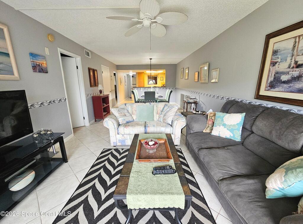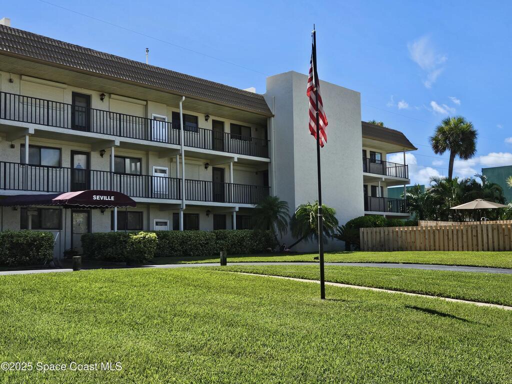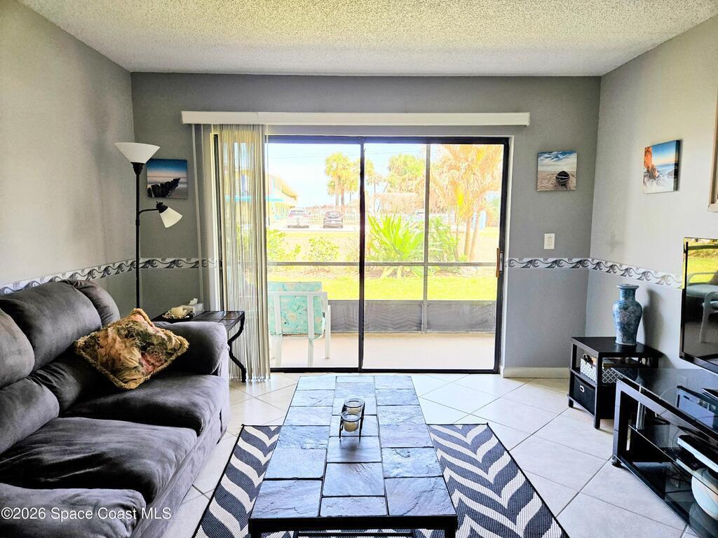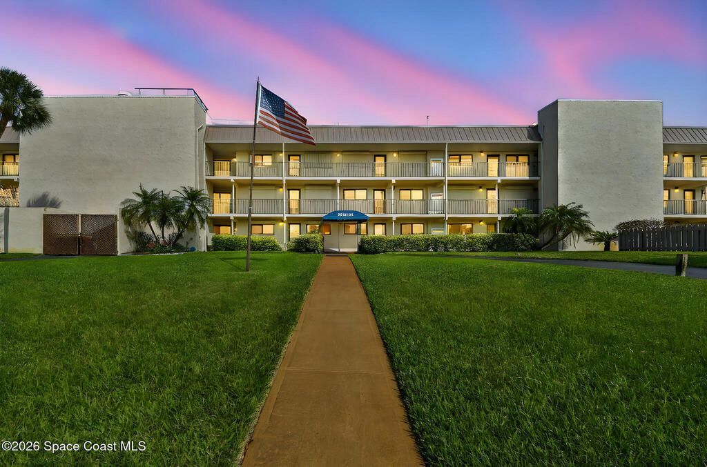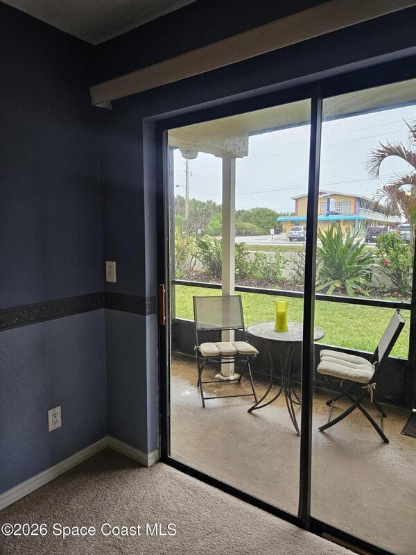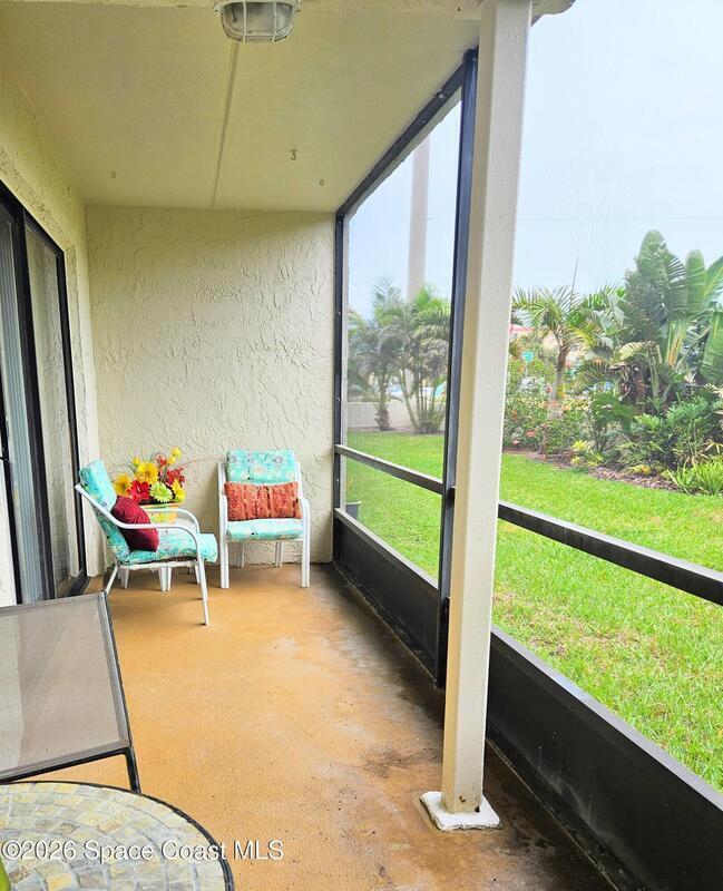 DEAL OF THE DAY!!! Check out this move in ready ground floor 2-bedroom 2 bath condo in a small 24-unit complex located directly across the street from the beach. The open floor plan offers comfortable coastal living in South Cocoa Beach. Partial updates include an open kitchen with granite countertops and lots of storage. Ideal for a primary residence, vacation getaway or investment opportunity. This special location provides easy access to the beach from the public 16th Street access or from the secret path one block south. Enjoy a private quiet setting with large screened in patio, extra storage and one car garage. This well-maintained community has no upcoming assessments. Concrete restoration is complete with a new roof, mansard, soffits, and gutters in 2025. Priced below market to move quickly. Sold furnished or unfurnished.