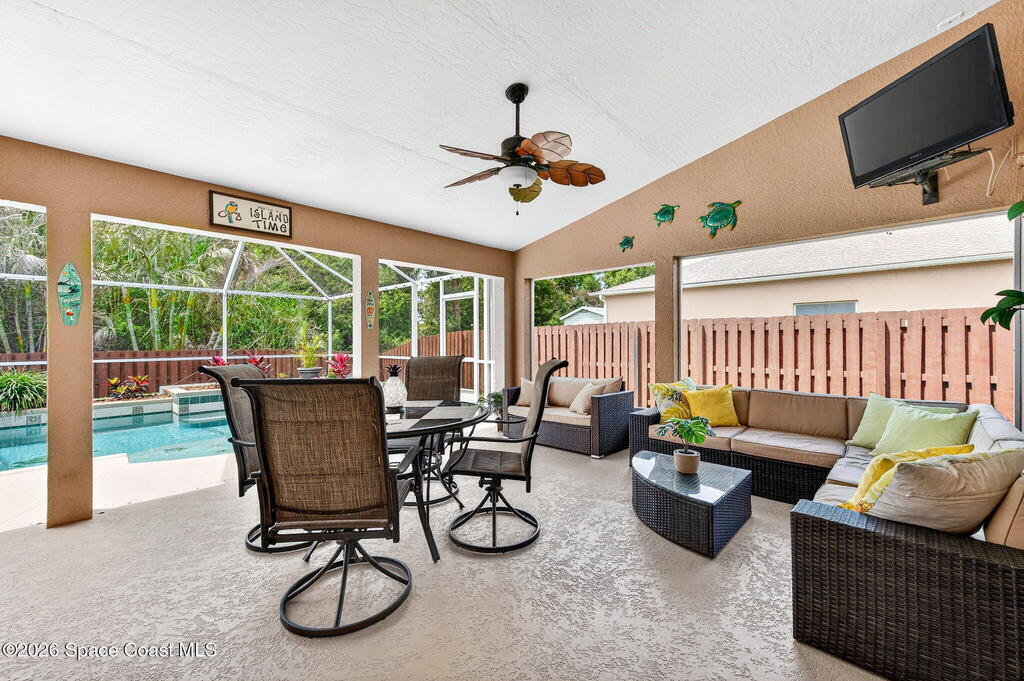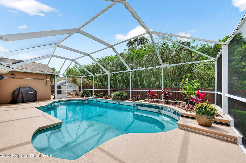 LOOK NO MORE!! Come & see this Beautifully maintained & Move-In Ready ONE OWNER 4 bedroom, 2 bath POOL HOME!! Located in highly sought-after Pineda Crossing. Enjoy outdoor living - Spectacular pool deck w/ an oversized covered lanai & fire pit - Great for entertaining friends & family. Enjoy a private preserve view plus a FENCED YARD & shed. The open floor plan flows seamlessly from dining to living to family room & kitchen, all enhanced by volume ceilings, crown molding & abundant natural light. Plantation Shutters throughout. The kitchen features SS appliances, updated cabinets & granite counter tops. Spacious primary suite w/ double door entry & access to lanai. Lush landscaping & paver driveway. Major updates include: Roof (2016), AC, Water Heater & Fridge (2025), Pool Pump & Disposal (2026). Convenient location - near Patrick Space Force Base, shopping, restaurants, A-Rated Schools, major roadways, & just a short drive to the beach. Will not last-Schedule your private showing!