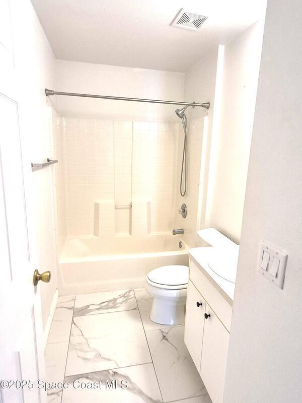 Stunning Lake View Home in Highly Desirable Bayhill Community - East VieraEnjoy serene lake views from this beautifully maintained home located in the sought-after Bayhill neighborhood, just minutes from shopping, dining, and top-rated schools.Featuring tile flooring throughout, this home offers a spacious open floor plan with a large living and dining area perfect for entertaining. The updated eat-in kitchen boasts granite countertops, white cabinetry, and a generous walk-in pantry, and it opens to the family room with picturesque lake views.The primary suite includes a walk-in closet, garden tub, separate shower, and dual vanities. The front bedroom, currently used as an office, includes a closet and can easily serve as a study or studio.Additional features include a 2-car garage with a utility sink. This move-in ready home combines comfort, style, and an unbeatable location. NO PETS PLEASE