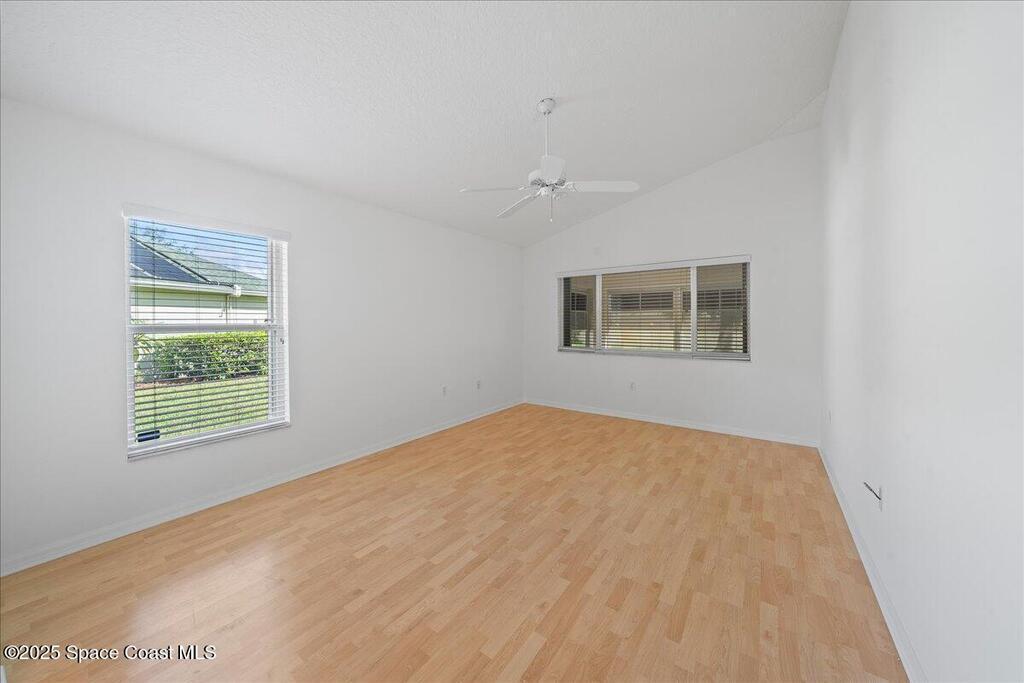 Welcome to Pine Creek, a beautifully maintained 55+ gated community offering comfort, low maintenance living, and an active lifestyle. This spacious 2 bedroom, 2 bathroom home includes a versatile office/flex space, perfect for working from home, hobbies, or guest accommodations. Features include vaulted ceilings, no carpet, eat-in kitchen, accordion hurricane shutters, and a freshly painted interior. Community amenities include a clubhouse, pool, spa, fitness room, and weekly social events that make it easy to connect with neighbors. The low HOA fee includes internet, cable, lawn care, sprinkler maintenance, and exterior painting every 8 years.Located just minutes from Downtown Melbourne, shopping, dining, and the beaches, this home offers the best of Florida living in a quiet, well-kept community.Major updates: Roof (~2021), Water Heater (Oct 2022), AC (Nov 2022 indoor / May 2024 outdoor), New Sprinkler System (2024). New flooring (2026)