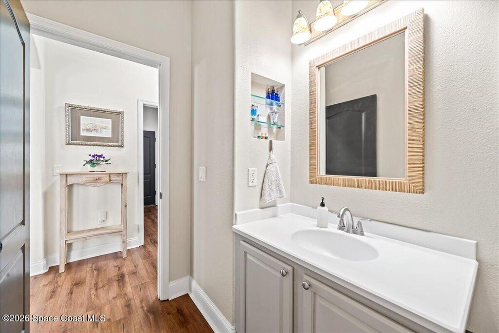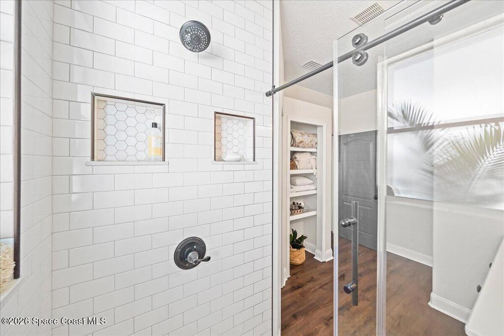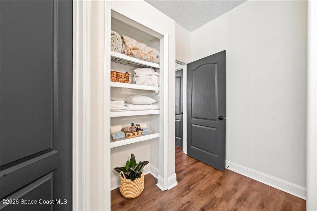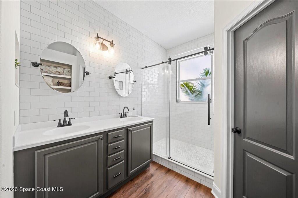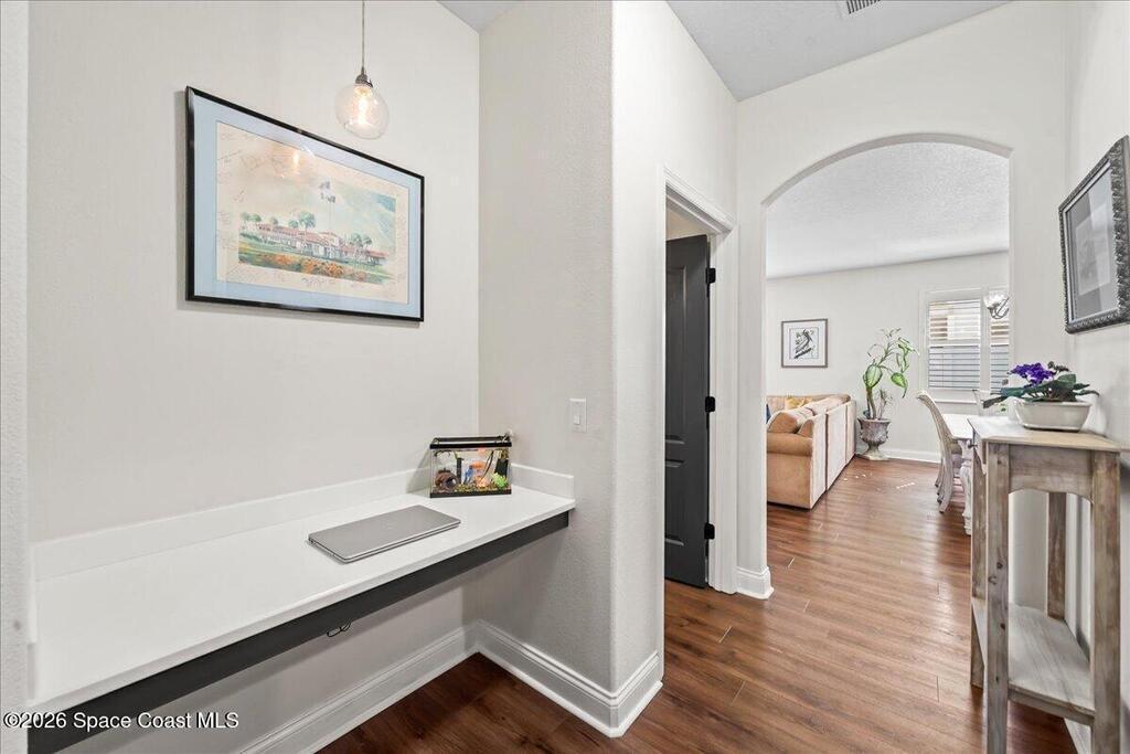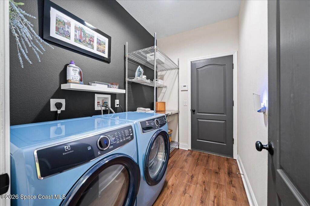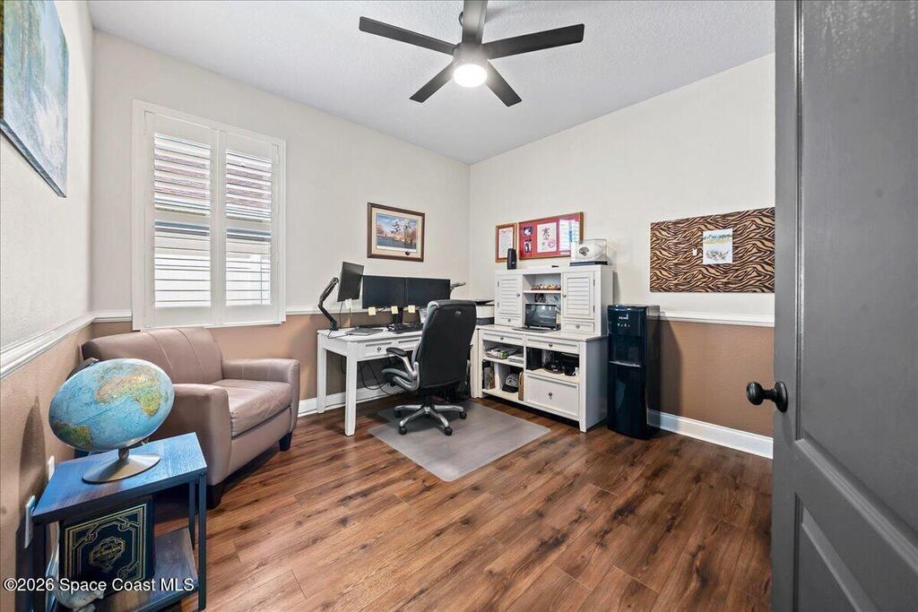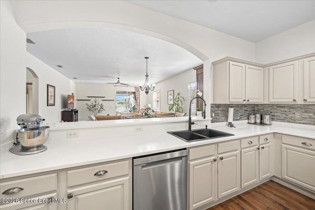 Impeccably maintained waterfront pool home in sought after Phillips Landing. This turnkey residence features a new roof, seamless LVP flooring, plantation shutters, a fenced yard, and fresh interior and exterior paint throughout. Start your mornings with a cup of coffee as you watch the water come to life, and spend your evenings unwinding in your private outdoor oasis surrounded by serene views and local wildlife. The screened pool and spa, heat pump, and new UV2 Paramount reverse osmosis cleaning system create the perfect setting for both relaxation and entertaining. The spacious primary suite offers a beautifully updated bath with a large walk in shower. Additional highlights include A/C replaced in 2020, a generator ready 200 amp panel, hurricane shutters, 3M window tint, a sprinkler system, and lush landscaping. Ideally located near shopping, dining, Patrick Space Force Base, and Cape Canaveral. Welcome Home!