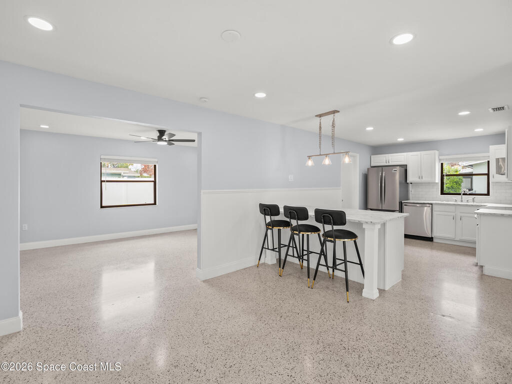Completely remodeled and move-in ready, this Melbourne single-family home blends modern updates with timeless character! Featuring 3 bedrooms and 2 full bathrooms, the split floor plan offers two separate living areas--ideal for everyday living and entertaining. Original terrazzo flooring runs throughout, adding classic Florida charm. The updated kitchen showcases a new island, white cabinetry, new countertops, and brand-new stainless appliances including a low-profile microwave. Upgrades include new PEX plumbing, fresh interior texture and paint, new lighting and fans, a 2021 roof, brand-new HVAC, and new water heater. An oversized utility room adds extra functionality. Outside, enjoy a spacious backyard with a huge storage shed. A 1-car carport and NO HOA provide added convenience. Ideally located near shopping, dining, major employers, and the beaches!