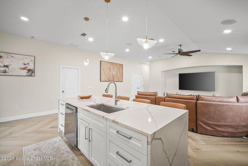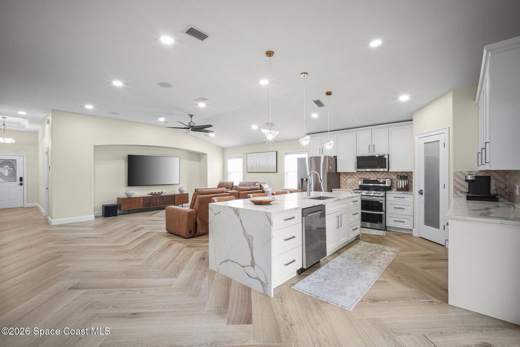 Very well maintained home!! Beautiful remodeled kitchen with 9ft island, level five Quartz. Perfect for a first home. Huge master bedroom and spacious living area. This home is in a great and quiet neighborhood and close to Viera but out of the traffic area. Home has been freshly painted, top grade appliances purchased in 2024. Outside is fenced in with a huge screen in paver patio, great for entertaining!! Easy access to major highways