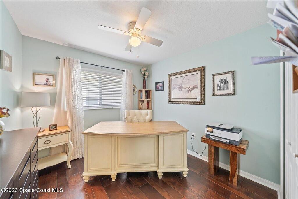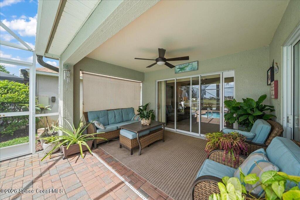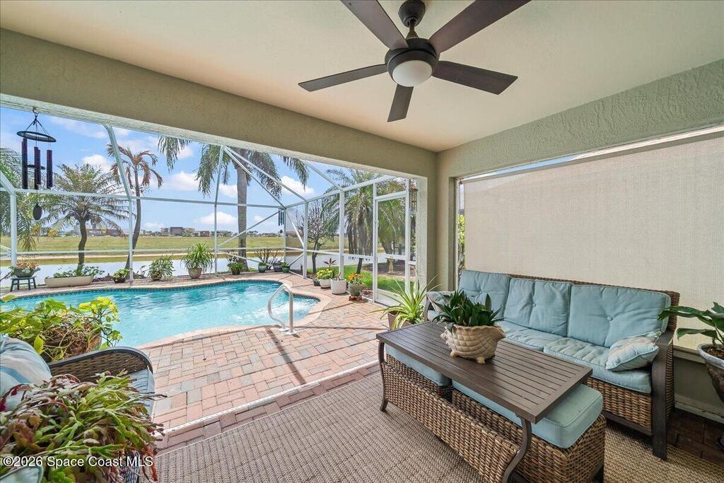 Located in the gated Sonoma community in Viera, this home is ideal for professionals seeking a balance of comfort, privacy, and efficiency, or those looking for everyday living coming together for the whole family. Featuring custom window treatments and hurricane shutters, it offers both refined style and practical protection. The interior layout supports a productive lifestyle with defined spaces for working from home and unwinding after a busy day. Step outside to a screened, heated saltwater pool with a covered seating area--perfect for decompressing in the evenings or hosting friends, clients, or colleagues in a relaxed setting. Positioned in one of Viera's most desirable communities, this is a move-in ready home designed to complement a driven, modern lifestyle.