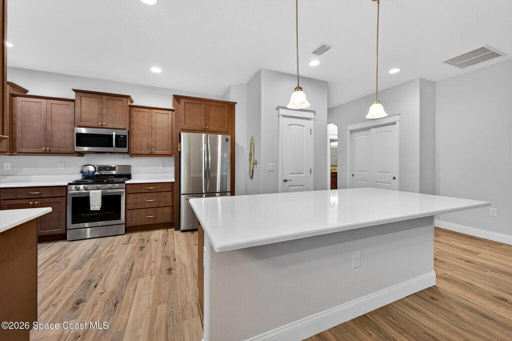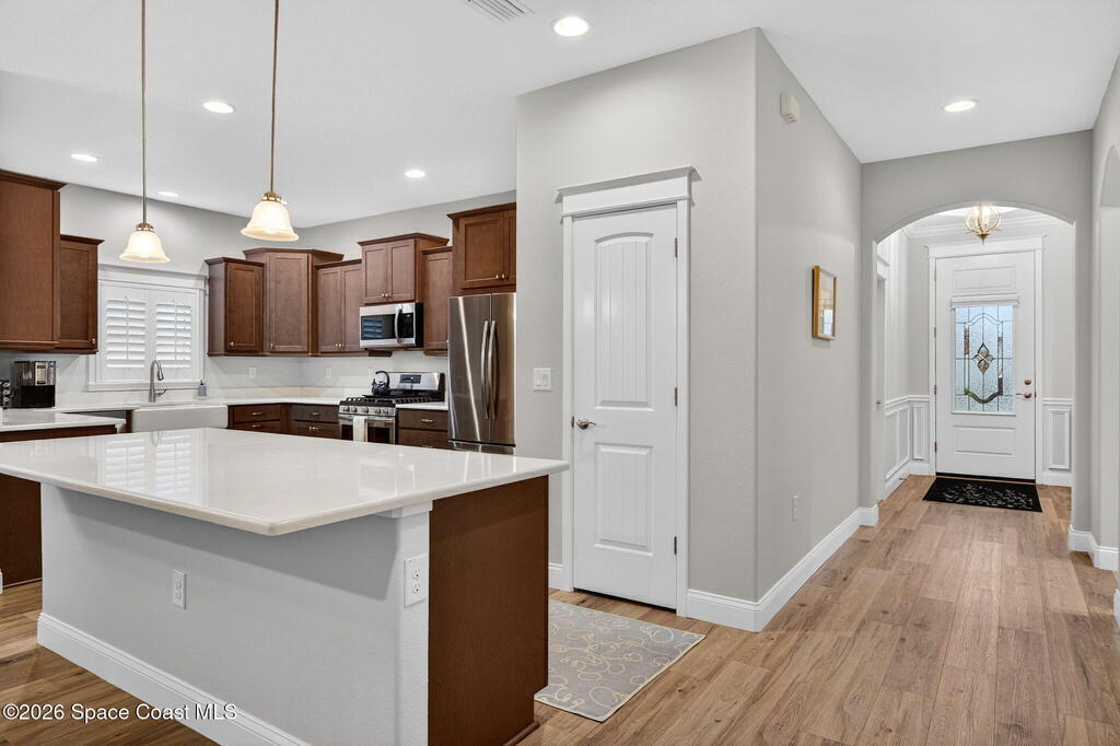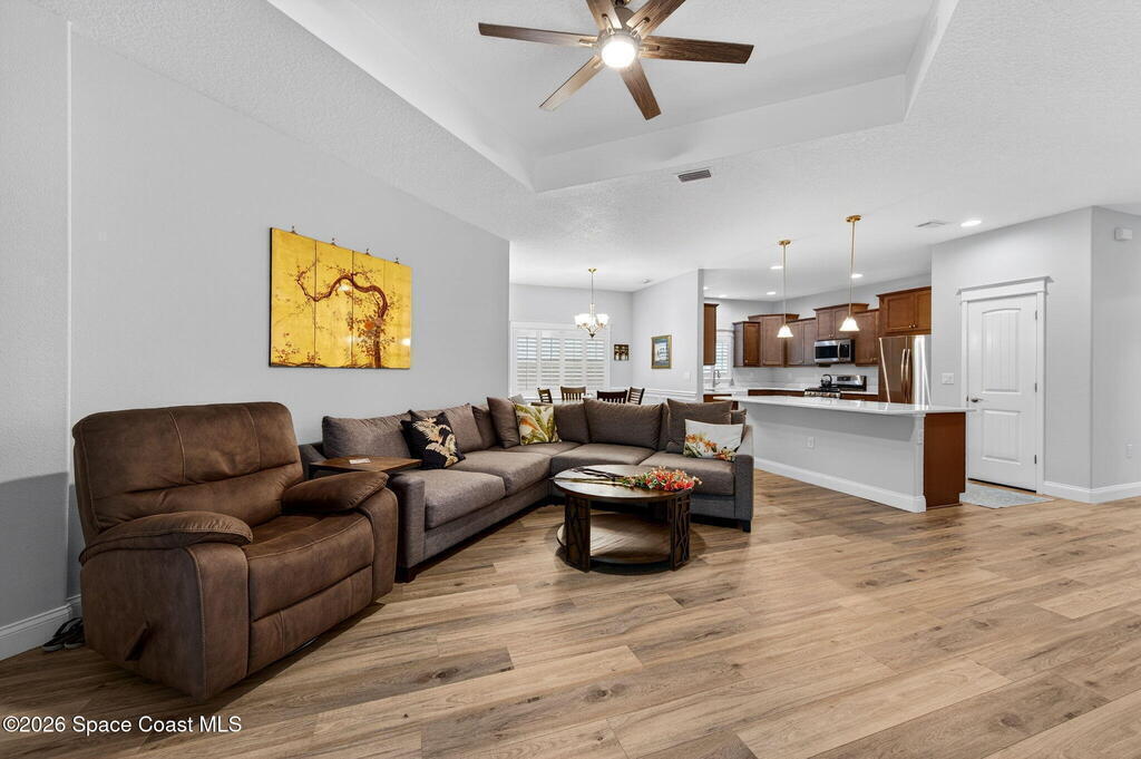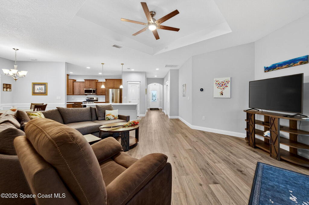 ''Only the Best'' in this beautifully upgraded 3BR/2BA home in sought after Capron Ridge. Built in 2020 yet better than new, this Key West inspired residence features a front porch, partial metal roof, 2 car garage, and impact windows and doors. Enter through an elegant 8ft door into a foyer with tray ceiling and decorative millwork. The open layout offers luxury vinyl plank flooring, while the gourmet kitchen includes a gas range, stainless appliances, updated soft-close cabinetry, and quartz countertops. Enjoy your private outdoor retreat with an electric heated pool, waterfall, SunPro awning, and lush landscaping. Over $111K in upgrades include a whole-house generator, hurricane screens with additional Kevlar patio protection, plantation shutters, new 2026 carpet, and added metal shutters. Gated community with 24-hour security, lawn care, resort-style amenities, and transferable structural warranty. Viera Schools, close to I95 and minutes from Medical, shopping and beaches.