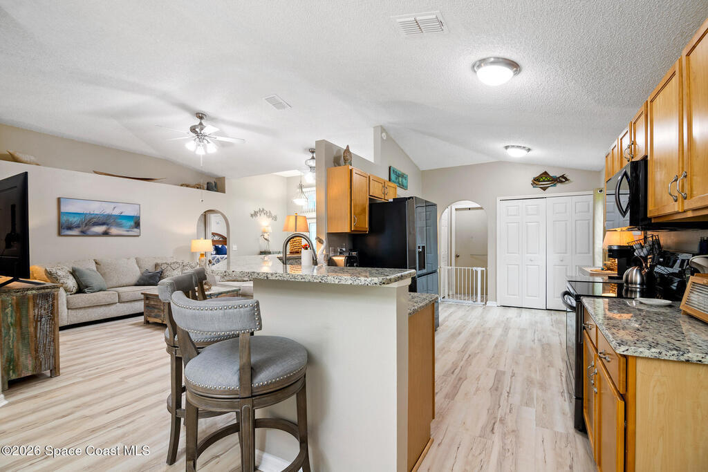 Where comfort, style, and serene water views converge in this exceptional Suntree home! This beautifully updated residence features total interior/exterior paint, stunning granite countertops, new appliances, and gorgeous LVP flooring throughout, creating a bright and modern living space. Enjoy peace of mind with 4-point items already completed: HW tank (2026), AC (2023), and roof (2017). Accordion shutters, Hurricane front Dr & slider (2025). The open and inviting layout flows effortlessly, perfect for both everyday living and entertaining. Step outside to your screened-in lanai and unwind while overlooking tranquil pond views, an ideal setting for morning coffee or relaxing evenings. With limited inventory in this price range, area, and condition, this home presents an incredible opportunity. Conveniently located near shopping, dining, major roadways, and a short drive to Brevard's beautiful beaches and top employers. Start moving and start living!
