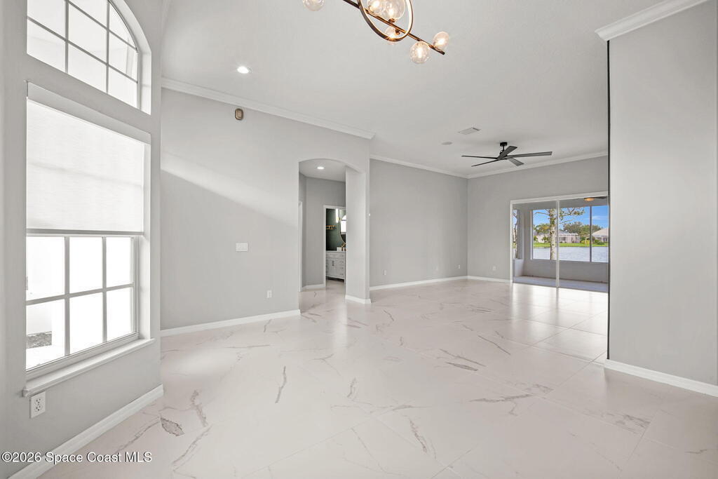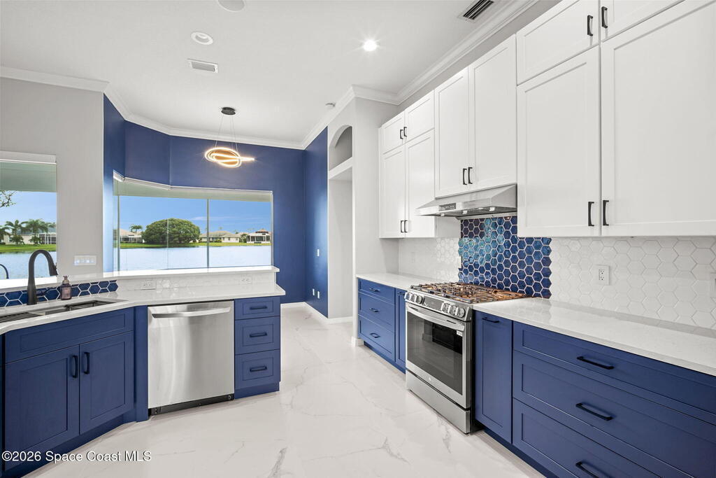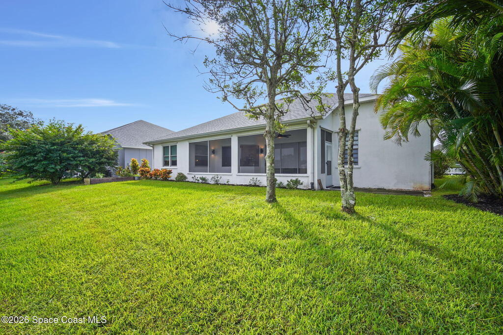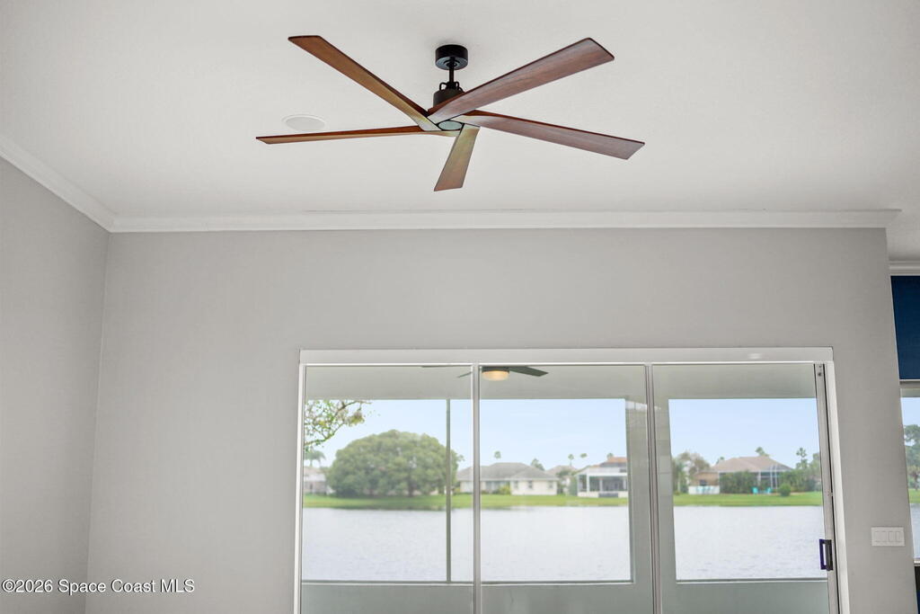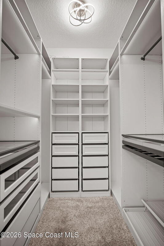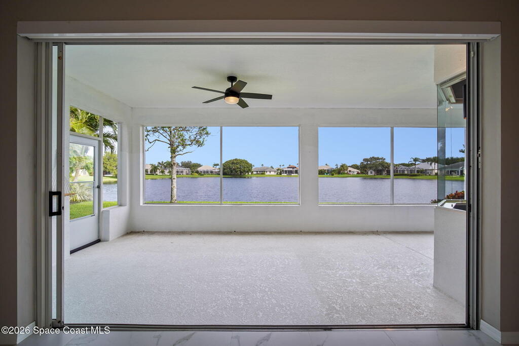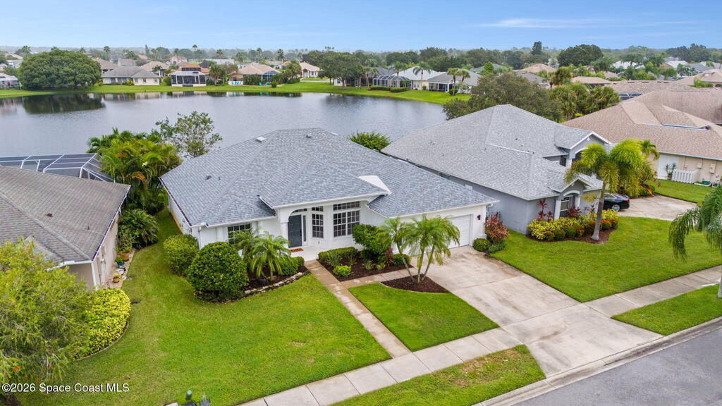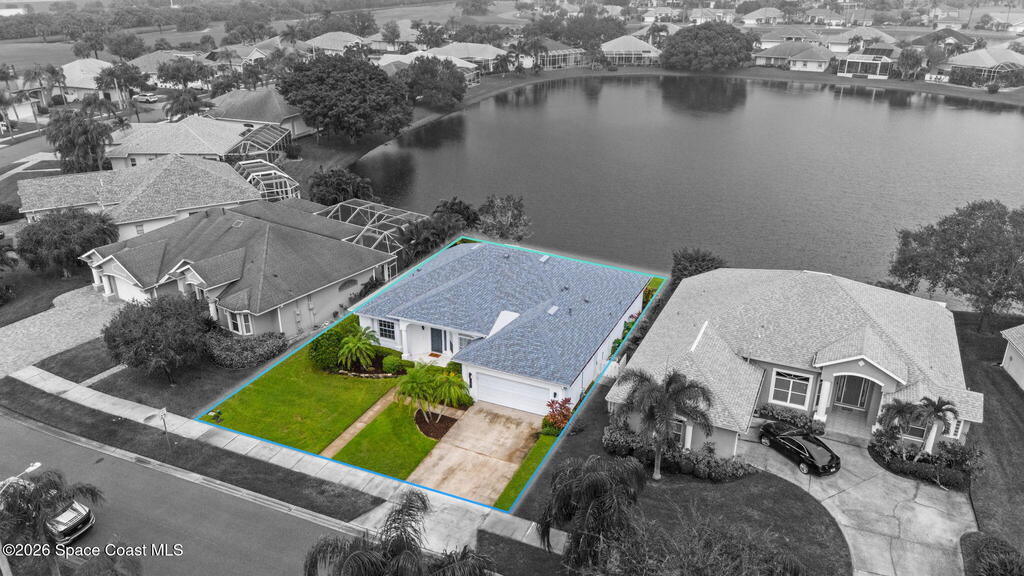 Completely Remodeled. Waterfront Home in Viera East Golf Community! Waterfront views from nearly every room. Solid concrete block home with over 1,800 sq ft of living space. Brand-New Roof (2025). Tile and carpet, motorized shades - remote or app controlled, LED lighting & designer fans all upgraded in 2023. The kitchen 2023 upgrades include soft-close cabinets, all new appliances - featuring a freezer with cube and sphere ice, workstation sink with under-sink filter, dual fuel range. Primary suite features upgraded high-efficiency windows, custom closet, and wall sconces. Wired and installed new interior speaker system and exterior camera wiring completed in 2024. Newer gas on demand hot water heater (2023). Move-in ready with high-end finishes throughout. Viera East Golf Community offers a beautiful golf course, pool, tennis court, and clubhouse with restaurant. Enjoy living in luxury with both this property and community!
