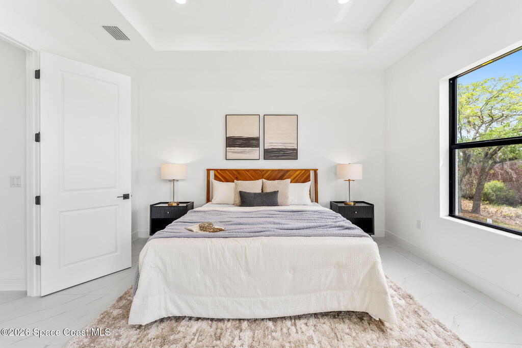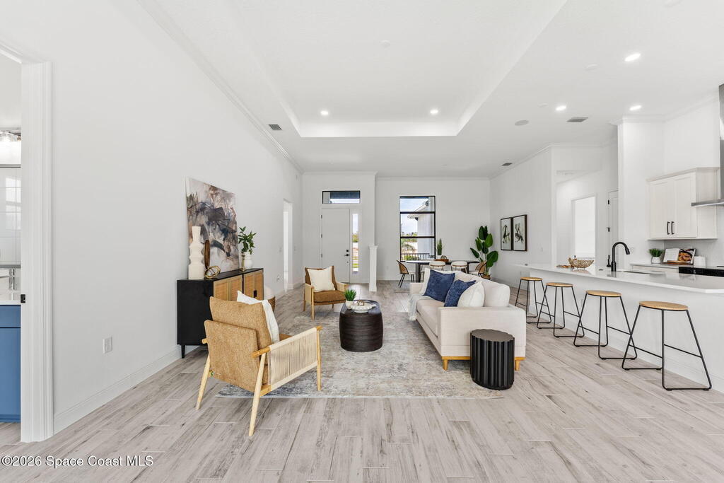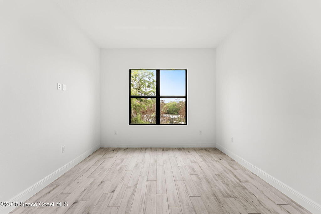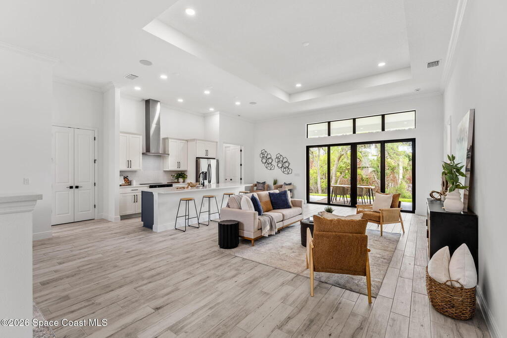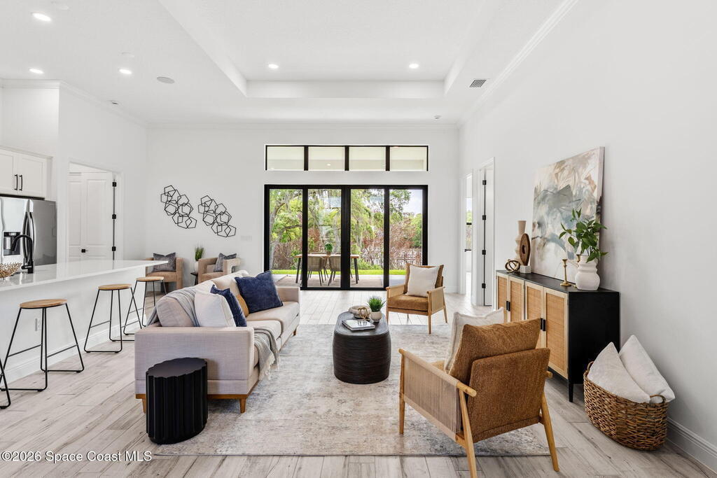 Poised along the Eau Gallie River, this newly constructed 4-bed, 3-bath residence offers a thoughtful balance of craftsmanship, comfort, & understated luxury across 2,400 sq ft. Framed by tranquil conservation views & complemented by a shared dock w/ the opportunity to secure a private boat slip, the setting invites a seamless connection to the water. W/in a gated enclave defined by manicured grounds, green space, & resort-style amenities, the home reflects a refined approach to modern living, featuring 10' ceilings, 8' six-panel doors, impact windows, plank tile flooring, & a well-appointed kitchen w/ premium appliances & soft-close cabinetry. Spa-inspired baths w/ floor-to-ceiling tile enhance the sense of retreat, while a pavered driveway & fresh landscaping create a polished first impression. The backyard offers both privacy & potential, w/ room for a pool or expanded outdoor living overlooking the river. Just moments from Eau Gallie Arts District, beaches, Melbourne Airport & I-95