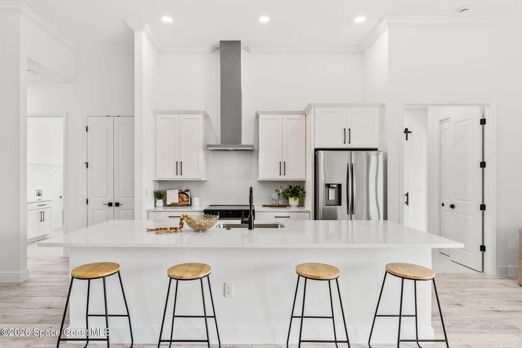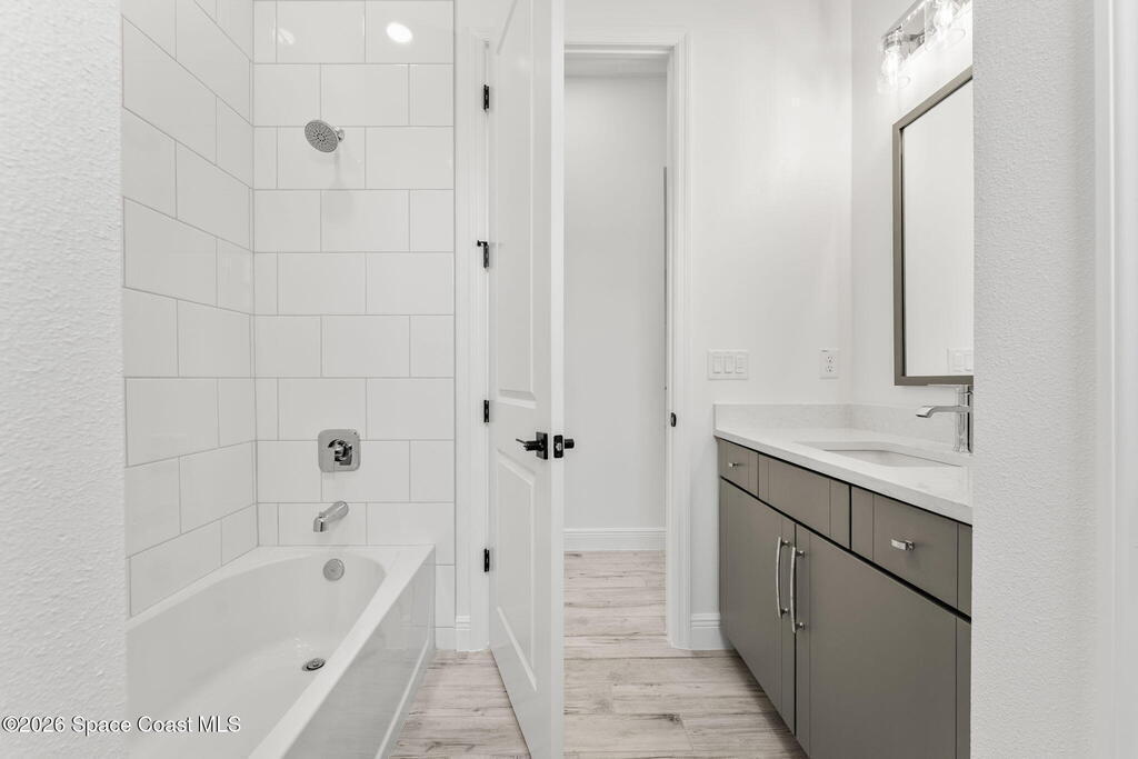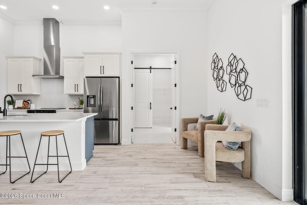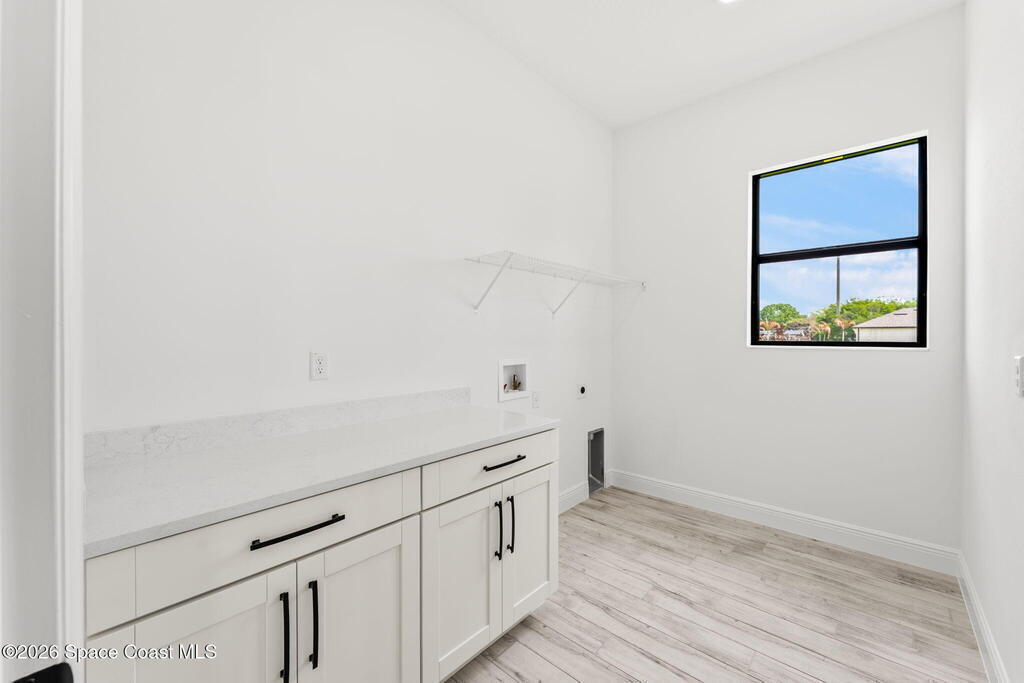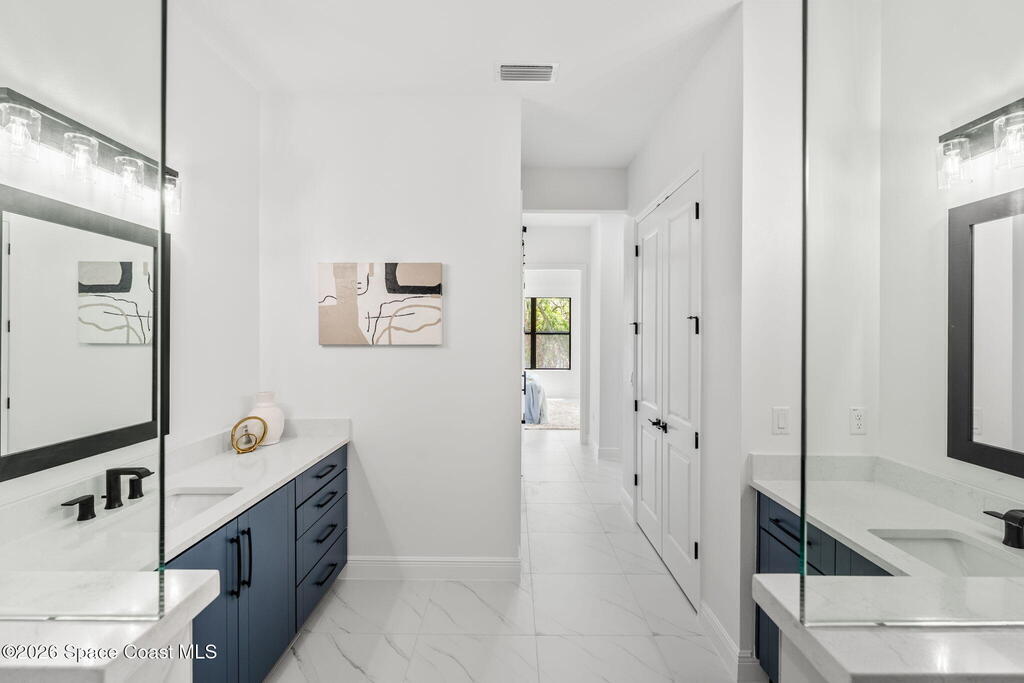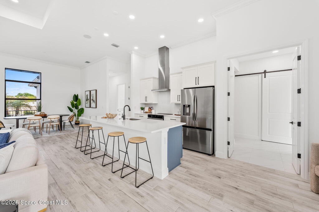 Poised along the Eau Gallie River, this newly constructed 4-bed, 3-bath residence offers a thoughtful balance of craftsmanship, comfort, & understated luxury across 2,400 sq ft. Framed by tranquil conservation views & complemented by a shared dock w/ the opportunity to secure a private boat slip, the setting invites a seamless connection to the water. W/in a gated enclave defined by manicured grounds, green space, & resort-style amenities, the home reflects a refined approach to modern living, featuring 10' ceilings, 8' six-panel doors, impact windows, plank tile flooring, & a well-appointed kitchen w/ premium appliances & soft-close cabinetry. Spa-inspired baths w/ floor-to-ceiling tile enhance the sense of retreat, while a pavered driveway & fresh landscaping create a polished first impression. The backyard offers both privacy & potential, w/ room for a pool or expanded outdoor living overlooking the river. Just moments from Eau Gallie Arts District, beaches, Melbourne Airport & I-95