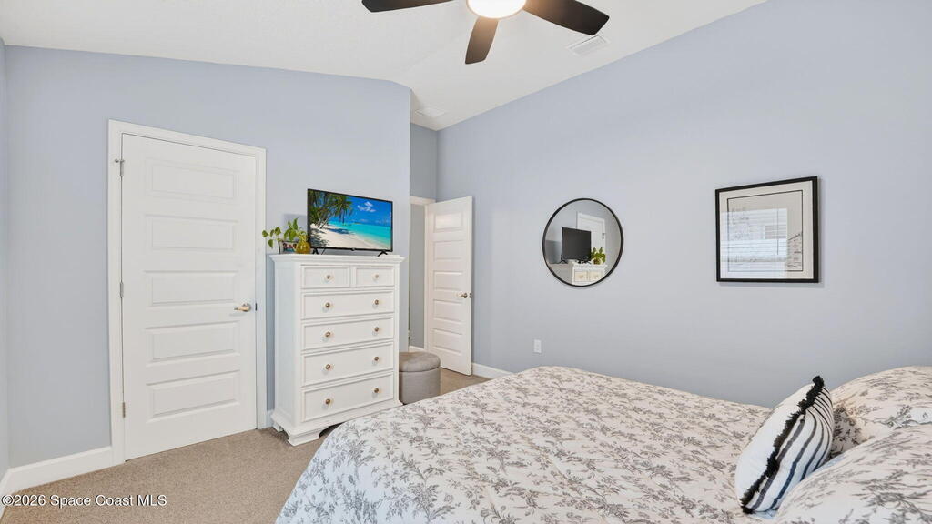 Impeccably Maintained 4 Bedroom Home in Hickory Ridge. Built in 2023, but it Looks Brand New! This Split Floorplan Has Soaring Ceilings, Neutral Finishes & Upgrades! Fantastic Layout with Open Kitchen, Dining & Living Areas. Master Suite has a Walk-In Closet, Double Sinks & Shower w/ Glass Doors. Three More Spacious Bedrooms and Shared Full Bath. The 20x8 Patio was Screened In, Double Ceiling Fans & Shark Coated Floors (Also, in garage and front entry). Extended Paver Driveway & Sidewalks Installed Plus Lush Landscaping! Centrally Located Just Minutes From KSC, Beaches & Orlando! This Low Maintenance Home is Turn Key & Ready to Move-In!