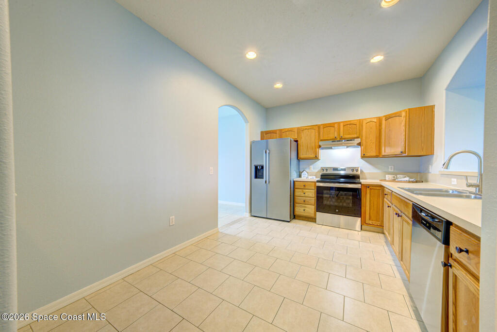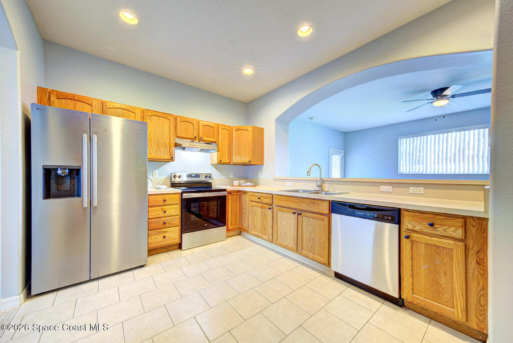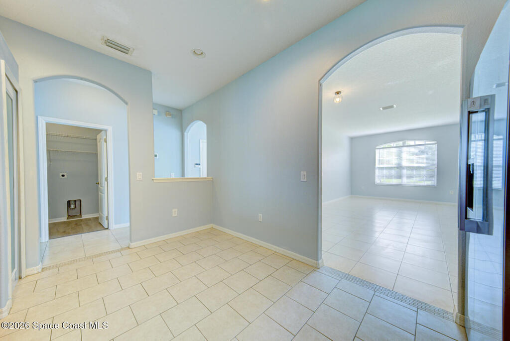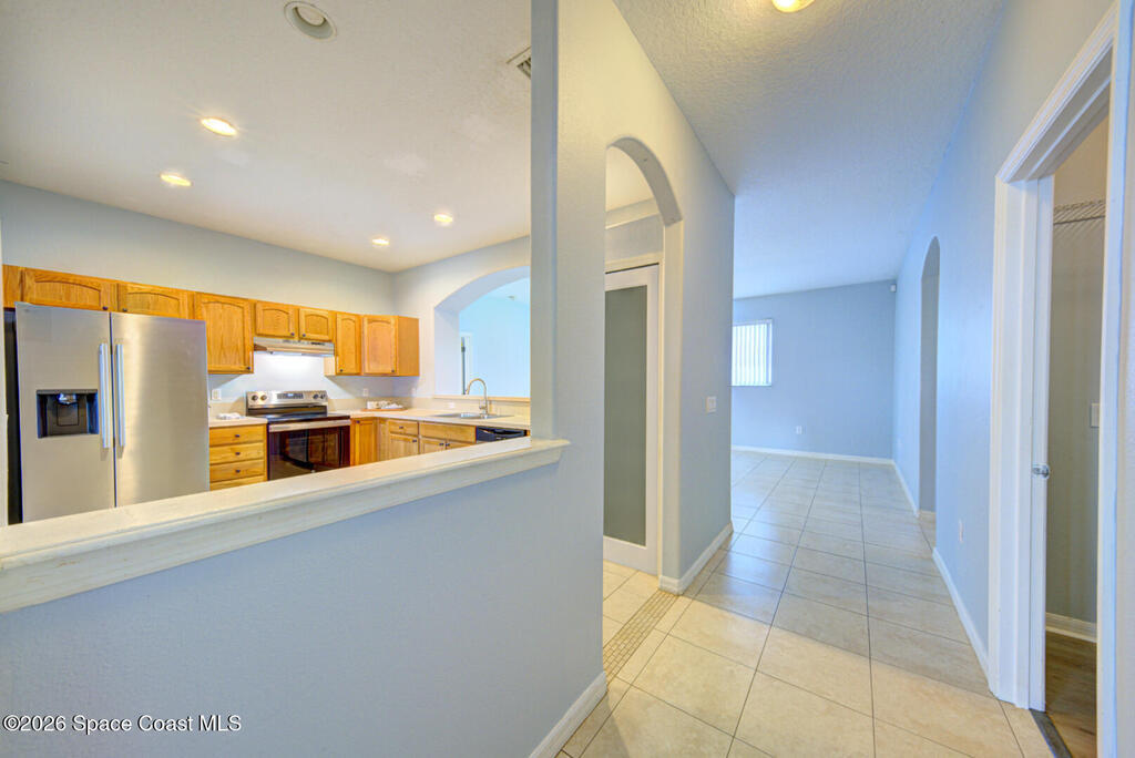 Fabulous location - near Kennedy Space Center with easy access to I95, US1, beaches, Port Canaveral & more! This 3 bedroom, 2 bath concrete block home boasts a new metal roof in 2023, new water heater, AC in 2020. Roomy eat-in kitchen with brand new stainless steel appliances, pantry and breakfast bar. All tile and LVP flooring throughout. Master suite w/walk-in closets, double sink vanity, large soaking tub, separate shower and private commode. Screened patio overlooks the fully fenced backyard.