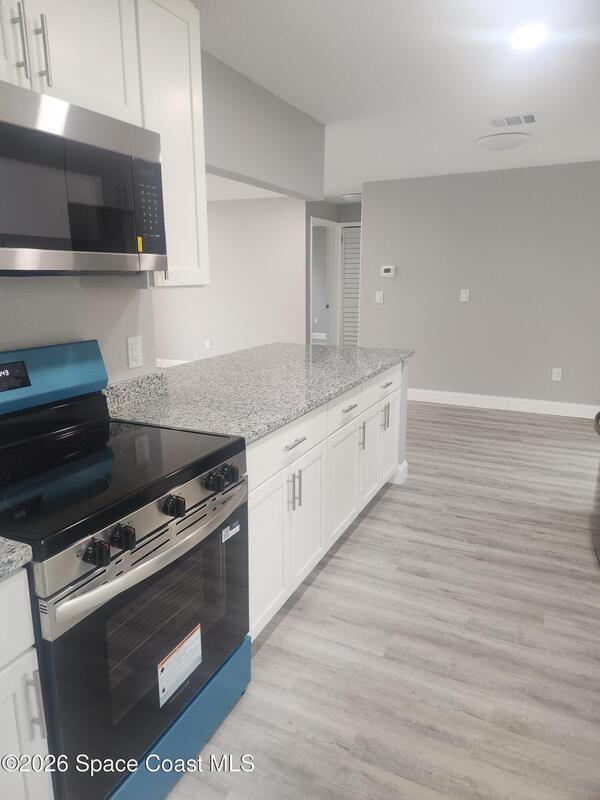 Completely reimagined from top to bottom, this beautifully renovated home offers the perfect blend of classic charm and modern upgrades. No detail has been overlooked--featuring a brand new roof, HVAC system, water heater, updated plumbing, and all-new electrical, giving you peace of mind for years to come.Step inside to find fresh drywall, new flooring throughout, and a bright, open living space enhanced by recessed lighting. The stunning, brand new kitchen is the heart of the home, showcasing sleek cabinetry, granite countertops with bar seating, modern lighting, and a full suite of new appliances--perfect for both everyday living and entertaining.The fully updated bathroom features a stylish tiled tub/shower combination, new vanity, updated flooring and fixtures. Both bedrooms have new flooring. Additional upgrades include new interior doors and closet doors throughout. Beautiful new front door. Area to the side of home can easily be made into 3rd bedroom. New screened porch w/fan