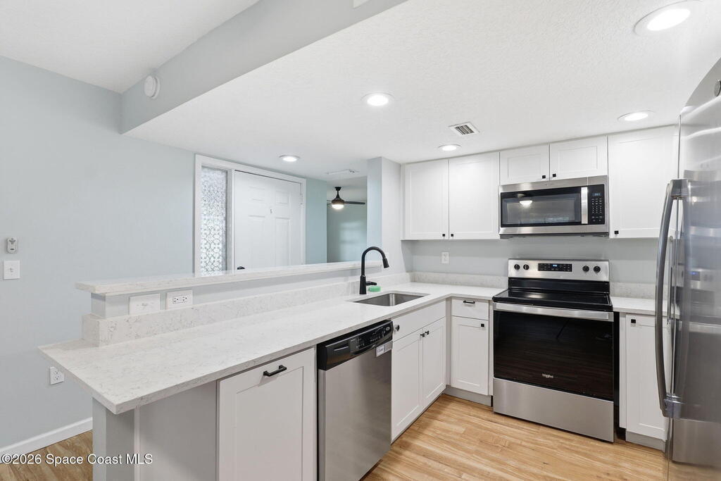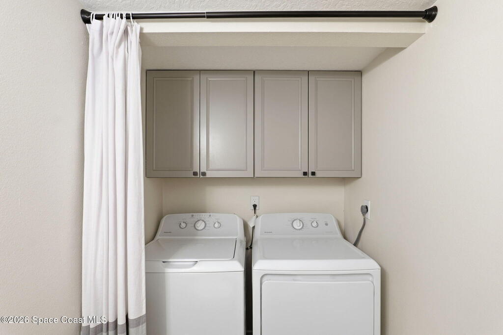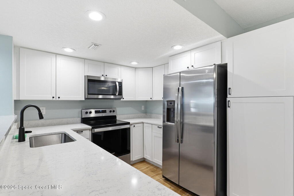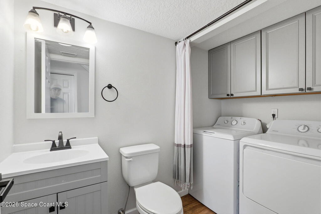 Completely renovated in 2022, this beautifully updated townhome is located in the charming, oak-lined community of Chateau in the Pines in the heart of West Melbourne. Every detail has been redone, including a new roof, HVAC system, water heater, flooring, kitchen, bathrooms, appliances, and more, with renovations completed in March 2024. The home features two spacious primary bedrooms, each with custom closets and private full bathrooms, along with a bright and functional main level offering a kitchen, living room, dining area or office space, and a convenient half bath with a brand-new washer and dryer. Enjoy outdoor living with a private courtyard and a balcony for fresh air and relaxation. Additional highlights include a community pool, two reserved parking spaces plus guest parking, and a central location close to shopping, dining, and everyday conveniences. Owner is a Florida Licensed Real Estate Broker.