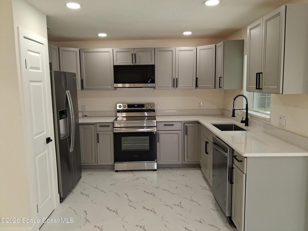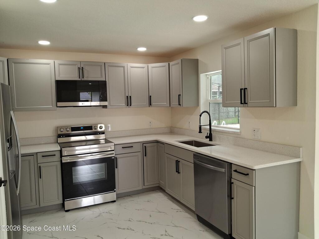 Welcome to Shangri-La ! Thoughtfully designed open concept home offers 4 large bedrooms, 2 spacious bathrooms, quartz countertops, an oversized master shower, double bath vanities, tile floors throughout and a HUGE in ground pool. Close to the Titus Landing Mall area. The roof, plumbing and wiring were all replaced and permitted.