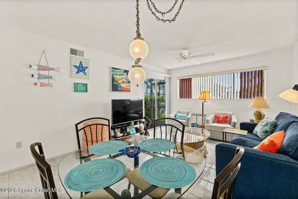 THIS FULLY FURNISHED GROUND FLOOR CONDO IN GATED VILLAES OF SEAPORT IS AVAILABLE 5/1/25- 10/31/25 NOT AVAILABE FOR WINTER. ALL TILE FLOORS, FULL SIZE WASHER/DRYER INCLUDED, SCREENED PATIO ON SUNNY SOUTH SIDE OF CONDO, CEILING FANS, COMMUNITY FEATURES THREE POOLS, TENNIS, PICKLEBALL COURTS, RACQUETBALL, EXERCISE ROOM AND BEACH ACCESS. CLOSE TO RESTAURANTS AT PORT CANAVERAL, MAJOR ROADS. FIRM NO PETS, NOT AVAILABLE FOR WINTER 2027