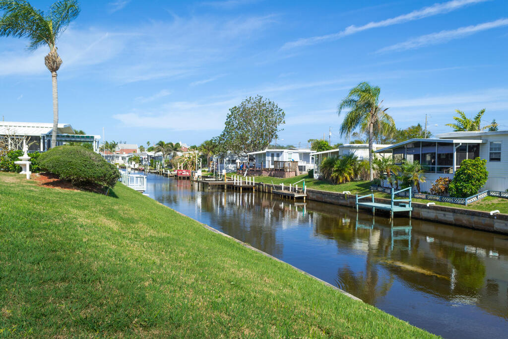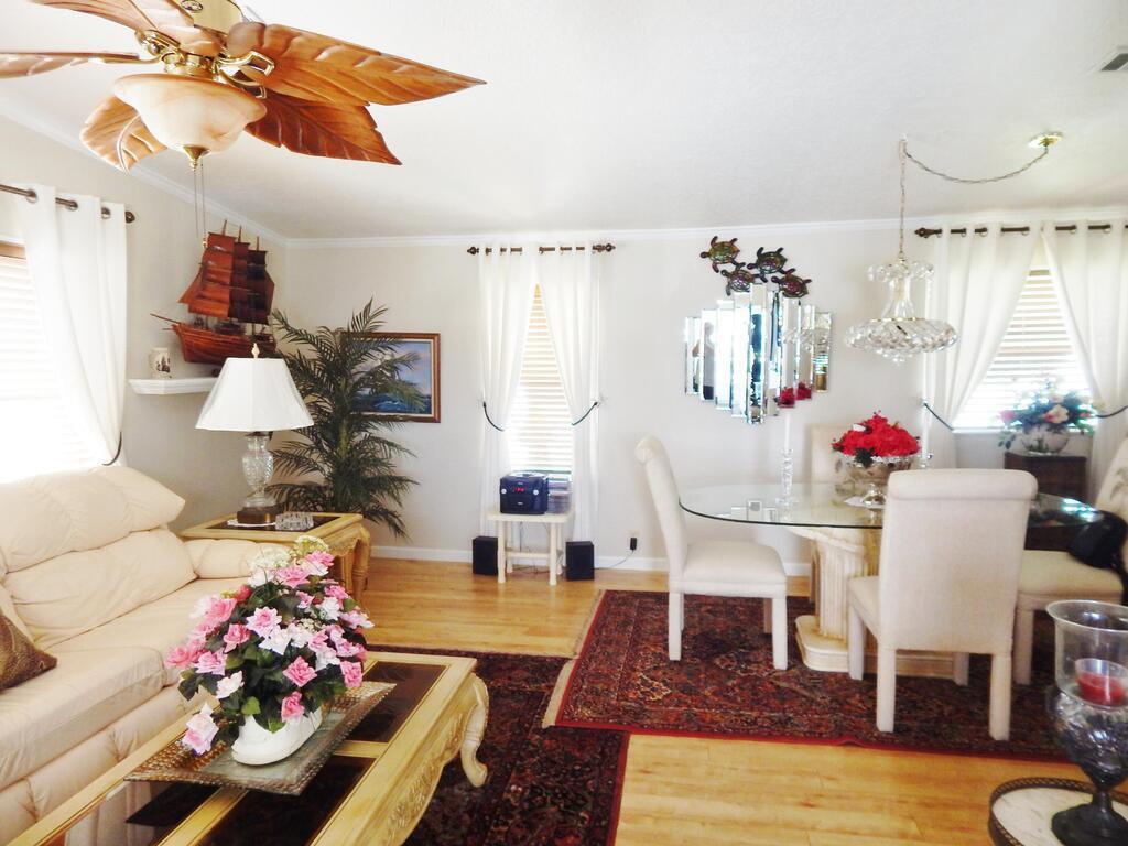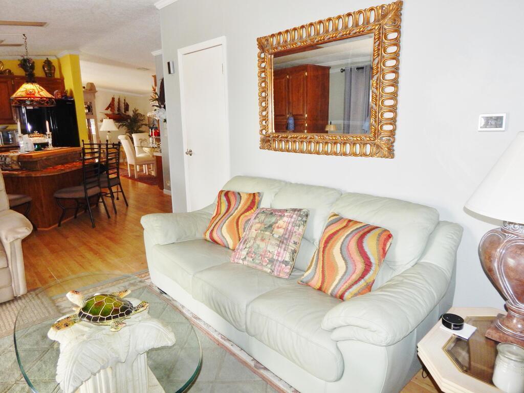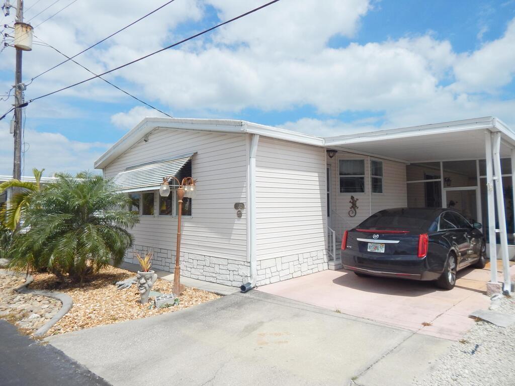 Beautiful 2 Bed 2 Bath is available in Palm Bay Estates, 55 and over waterfront community. The home was built in 1994 with 1,366 ft under air with separate living, dining & family rooms. In 2023, the seller replaced the A/C system, a tankless hot water heater, new foundation, and electric service. The kitchen has a new stove, microwave & garbage disposal refurbished kitchen cabinets, and oversized pantry. Both bathrooms have ceramic tile, with the master bath having double sinks and a separate shower with tile top vanities, and linen cabinets. The main area of the roof was replaced in 2023, and the side in 2019 & resealed 2024. screened-in patio with outdoor furniture& workshop included. Palm Bay Estates also has boat storage, RV parking, The home just had 4-point inspection done.