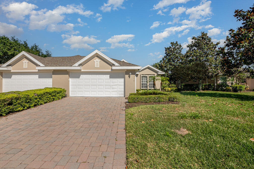 Live the GOLF Life in beautiful Viera East! Viera East Golf Community is convenient to the Beach, Port Canaveral, the airport, I-95 and US1. This Duplex is a 3BR/2BA beautifully maintained home with a 2 car garage. Located on a lake in the popular community of ABERDEEN! The patio is enclosed with sliders. The view is private and serene. The unit has fresh paint inside. Lawn and landscaping, as well as Exterior paint and the roof is maintained by the association. You must see this one! Bring your GOLF CART!