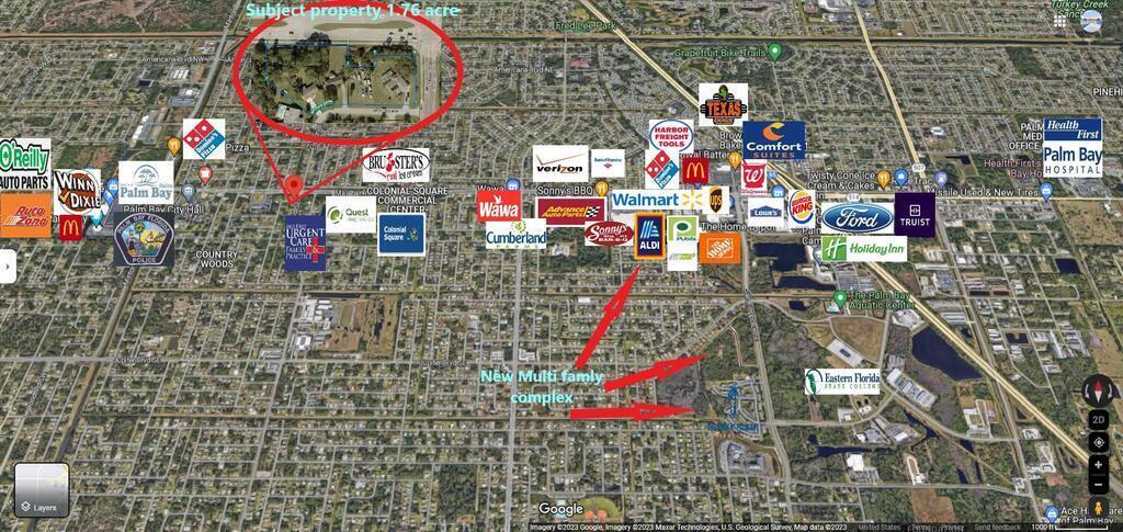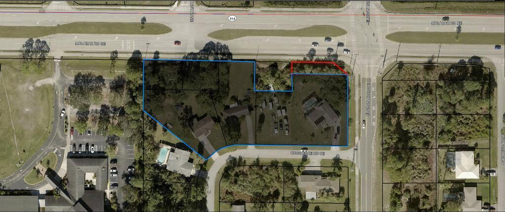 a remarkable commercial real estate opportunity in the thriving city of Palm Bay, This exceptional property comprises five smaller parcels, totaling approximately 1.75 acres, with the exciting potential to add two additional parcels, for another 0.23 acres, if required, for a grand total of approximately 2 acres. Strategically positioned along one of Palm Bay's bustling thoroughfares, this property enjoys high visibility, with an impressive daily traffic count of approximately 23,000. Currently, the property features three existing houses, on a month-to-month leases providing an immediate income stream while you prepare for redevelopment. Located in proximity to prominent retailers and benefiting from a signalized intersection, this property is ideally suited for a diverse range of uses.