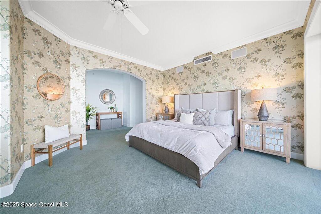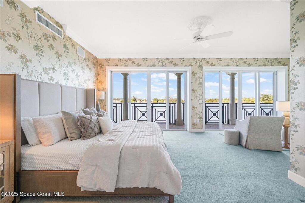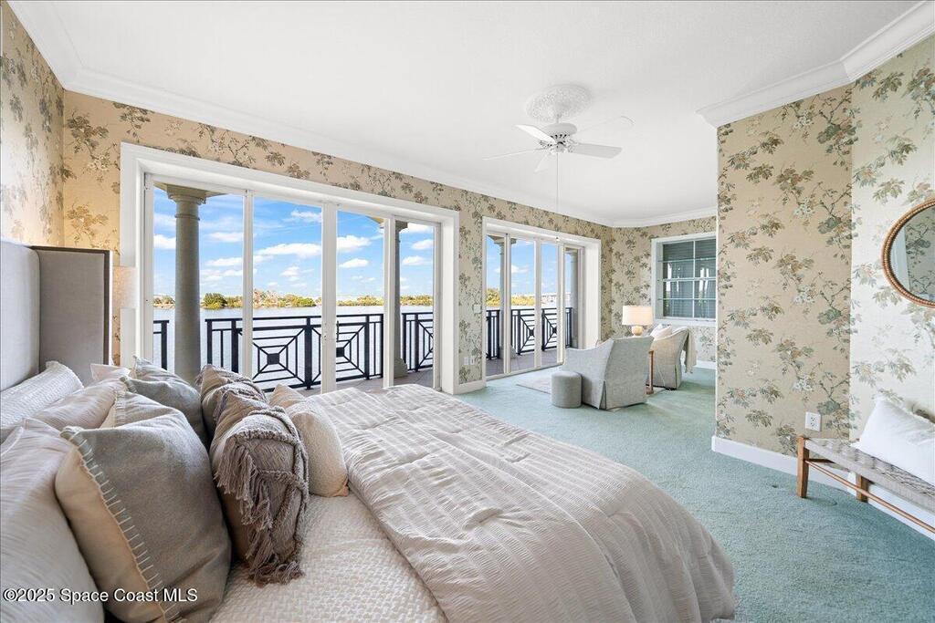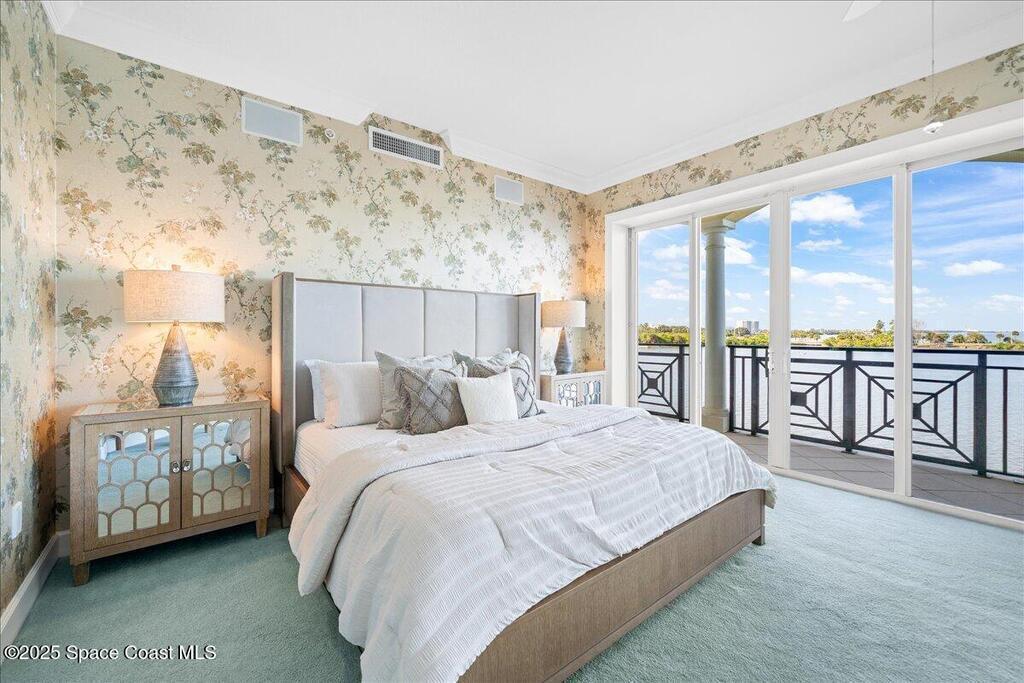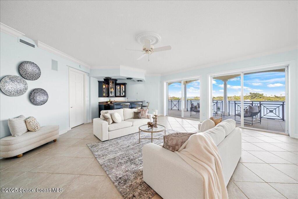 Breathtaking panoramic views of the Intracoastal Waterway in this rarely available luxury 3rd floor condo! Sitting on its very own waterfront peninsula, this private gated 4100 SF, 3 bedroom, 3 1/2 bath property is uniquely located within walking distance to Historic Downtown Melbourne and just minutes to the Beaches. With easterly breezes to your back you can take advantage of the nearly 200' of wrap-around balconies as you watch the sunrise and sunset from nearly every room. Every aspect of this property exudes luxury from the private elevator vestibule, custom gourmet kitchen, extra large living and dining spaces, and a primary bedroom with a huge walk-in closet and dressing area. Additional bedrooms all with en-suite baths and walk-in closets are spacious with high ceilings. Amenities include a 38ft dock with power and water, A beautiful pool overlooking the river and two private garage spaces. With only 6 total units, privacy is paramount! Come and see for yourself!