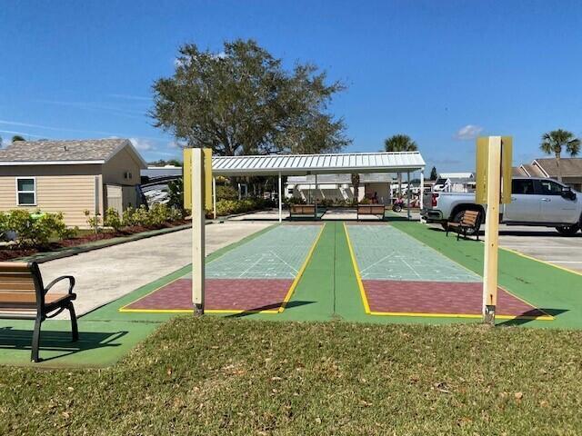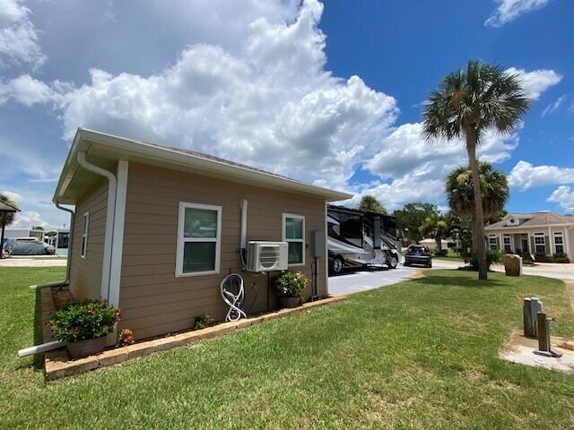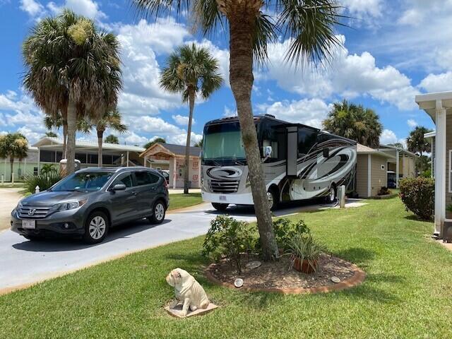 Extra long Class A RV lot with 16x20 executive suite ready for year round or seasonal resort lifestyle. The executive suite has Murphy bed, kitchen, full bath and includes a storage space that can be utilized as office or craft area. Plans have already been completed that show this executive suite built out as a more custom home if interested. Across the street is open shared space and pond overlooking the fourth hole. This active 55+ community features a gated entry, clubhouse, pickleball, bocce, heated pool and executive golf course open to the public. Close to airports, restaurants, beaches, theme parks and more. Watch the rocket launches from your own yard!