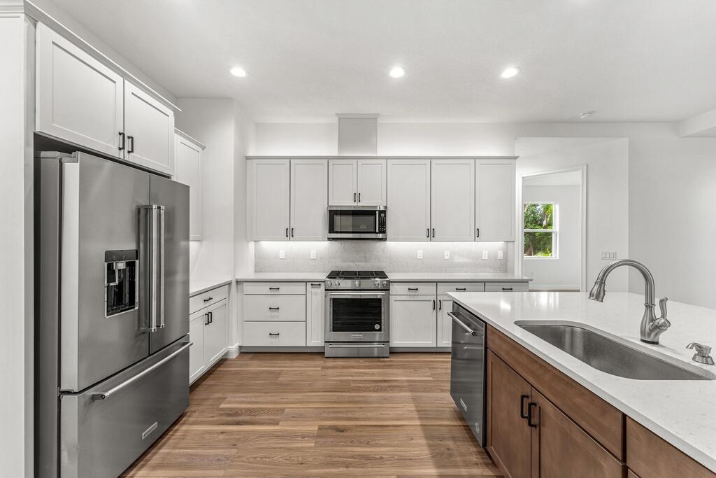 Welcome to your dream home, where modern elegance meets unparalleled comfort. This brand-new 2024 construction boasts an open & airy feel with soaring high ceilings that set the stage for a luxurious living experience. As you step inside, you are greeted by the sleek and stylish luxury vinyl plank flooring that seamlessly blends beauty with durability.The heart of this home is its island kitchen, a chefs paradise outfitted with pristine quartz countertops and state-of-the-art stainless steel appliances, including gas stove that promises both convenience and style. The open layout flows effortlessly into the living & dining areas, creating an inviting space perfect for entertaining family & friends.With four generously sized bedrooms and three well-appointed bathrooms, there is ample room for everyone. The expansive primary suite is a true retreat, featuring a large walk-in closet and a spa-like bath complete with a double-headed shower & double sinks, offering a luxurious excape.