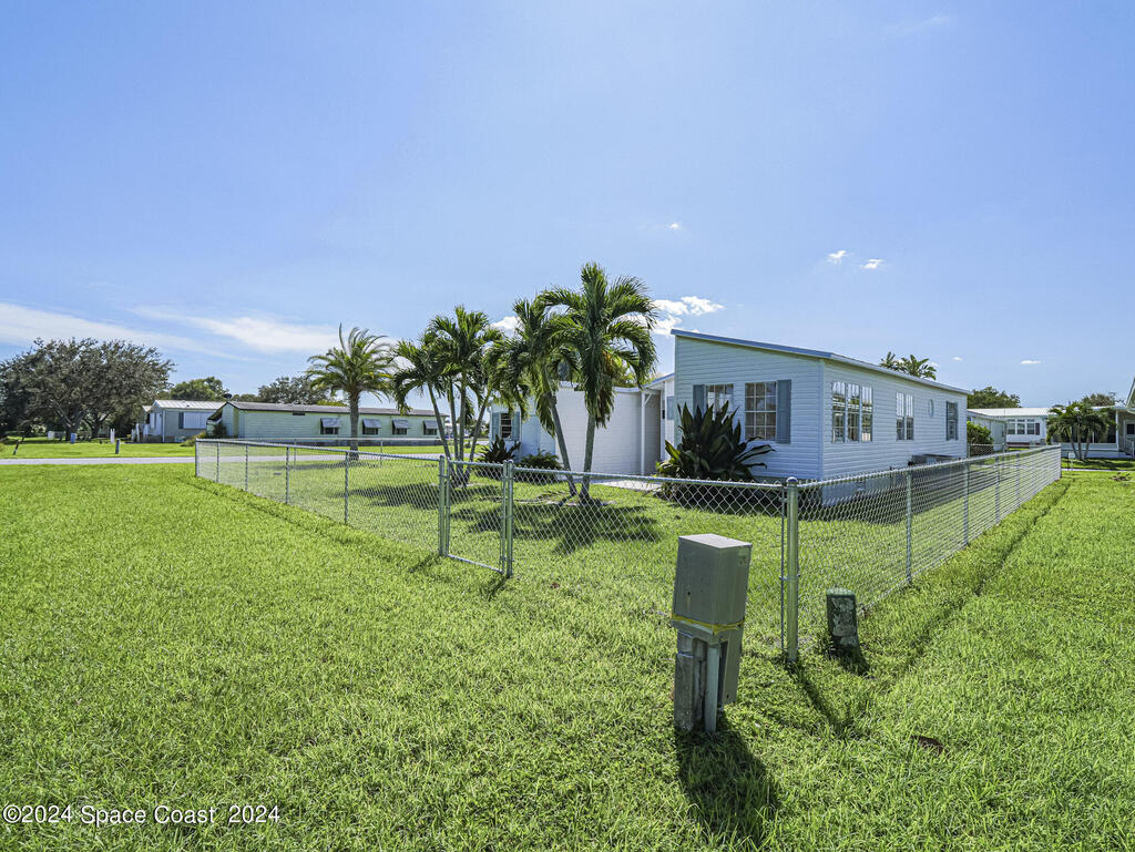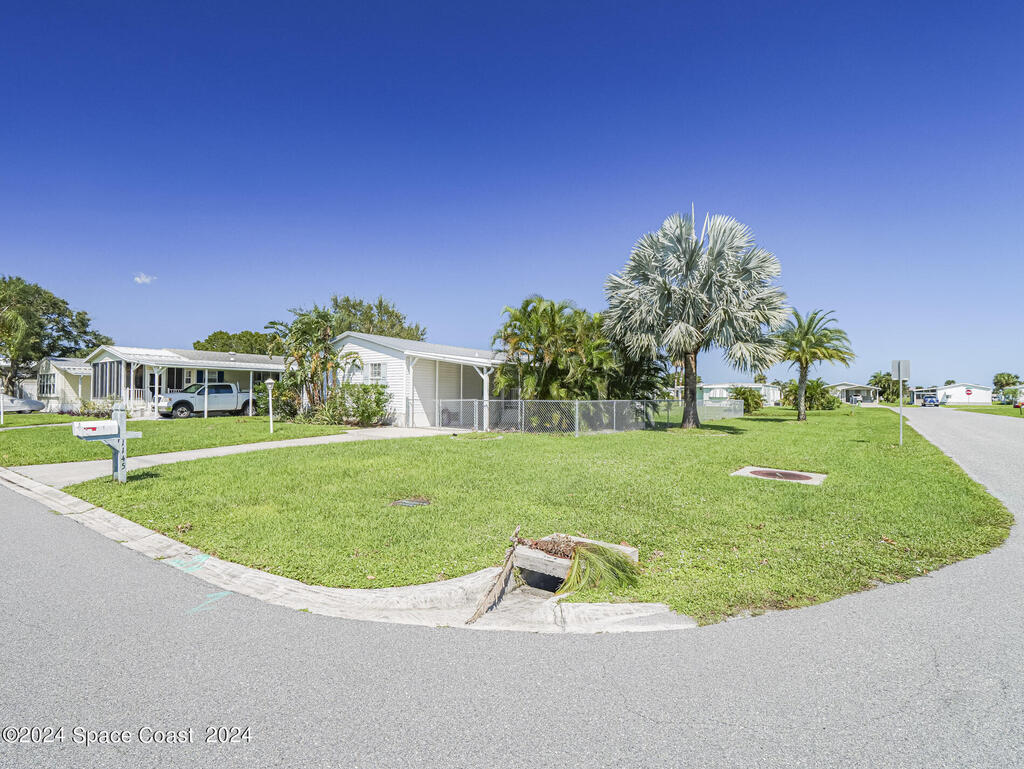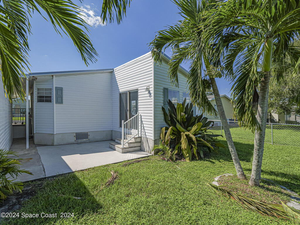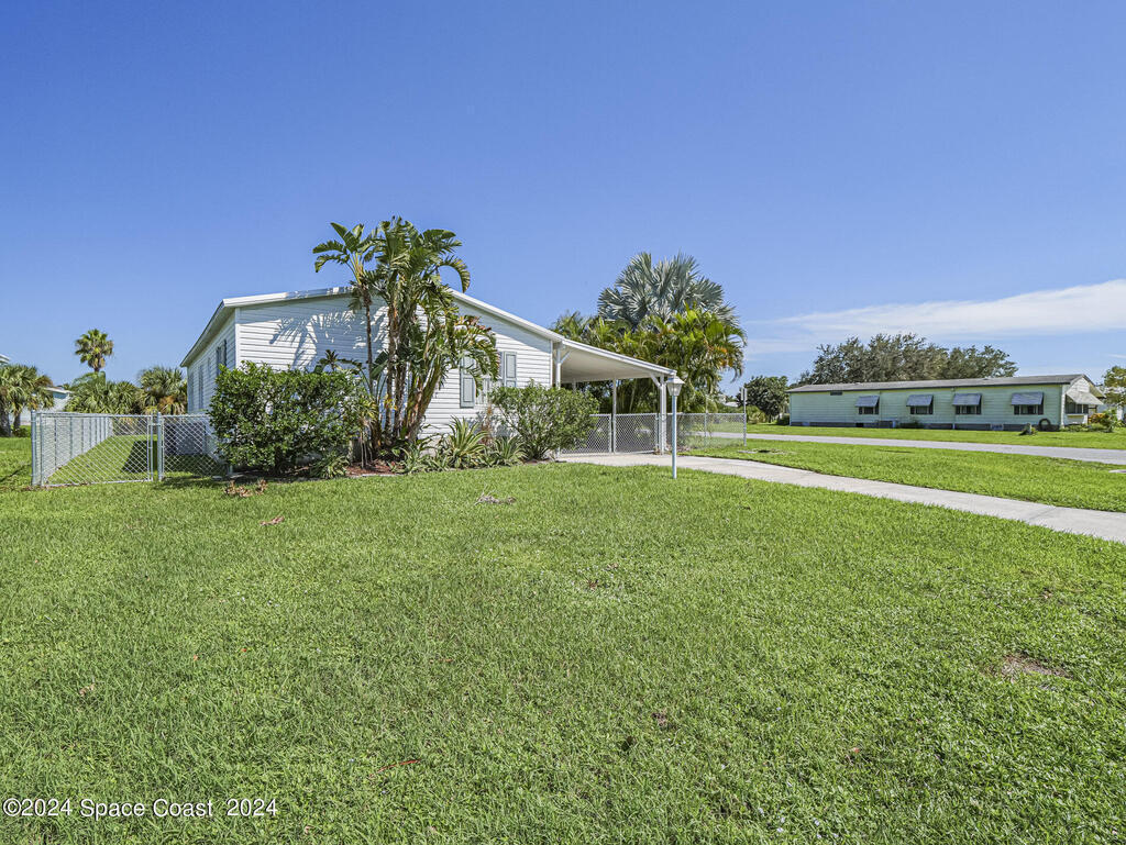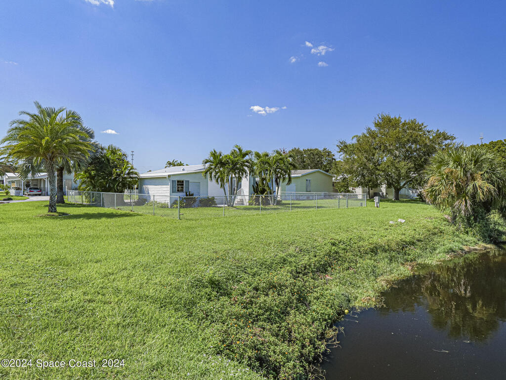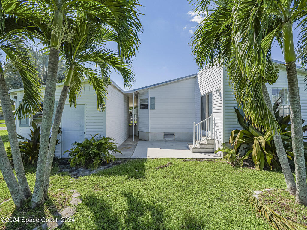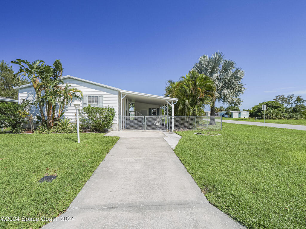 ** INCLUDES A ONE YEAR HOME WARRANTY WITH AMERICA'S PREFERRED HOME WARRANTY! ** Discover paradise in this charming 2-bed, 2-bath Barefoot Bay home! Featuring a 2022 metal roof and brand-new appliances as well as new washer, dryer, and water filter. This gem is move-in ready. Enjoy the convenience of a covered carport and an open floor plan perfect for entertaining. The kitchen boasts an island and eat-in area, while a versatile bonus space offers endless possibilities. Relax on your private courtyard patio overlooking a fenced yard and tranquil canal. A large corner lot with a shed provides ample storage. Barefoot Bay offers 3 pools, golf, tennis, and a vibrant community lifestyle. Don't miss out on this irresistible opportunity!