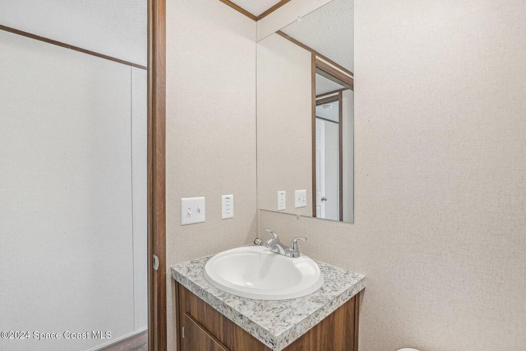 MOTIVATED SELLERFinancing available through preferred lender!!!!! Call listing agent for details. Discover the charm of this brand-new, never-lived-in modular home in a peaceful Mims, Florida neighborhood. Just under 1,000 sq ft, this single-wide home sits on a .35-acre lot surrounded by mature oaks. Enjoy a newly installed septic system and drain field, fresh power pole, and a new driveway for easy access. Perfect for those seeking comfort and privacy, this home is move-in ready and priced to sell--don't miss this opportunity!