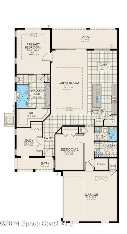 This Sapphire is a gorgeous 2 bedroom, 2 bath home with an open kitchen into the Great Room and Cafe. The Primary bedroom with stepped ceilings is beautiful and the double vanity bathroom and walk in closet are spacious. This home features a Study in lieu of Bedroom 3.