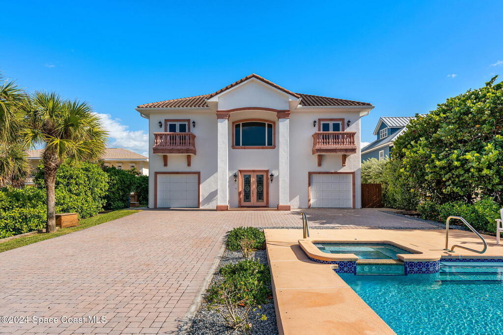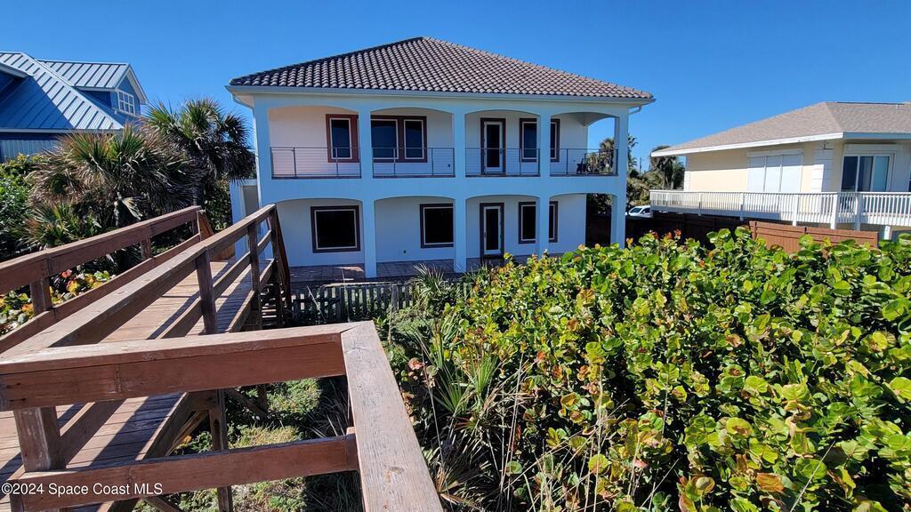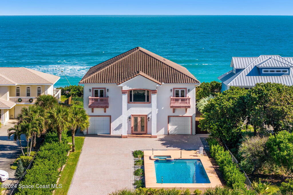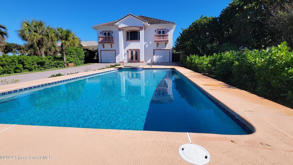 A rare combination of a very limited, deep Oceanfront property with an absolute bunker of a larger home. Built in 2008 from solid poured concrete on pilings with newer impact windows (2021) and a large pool, the views from this over 5,300 liv sq ft home and it's extra large covered balconies will never get old ! Loads of storage, a private elevator, high end water system, Icenyne insulation, massive amounts of storage & so much more to enjoy with this custom, Oceanfront gem !