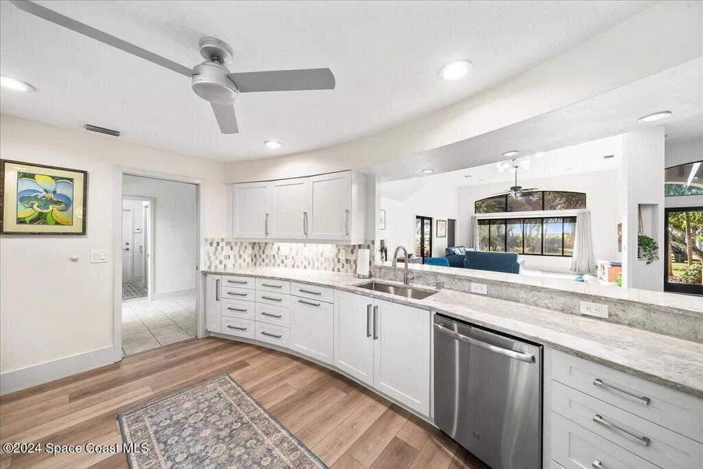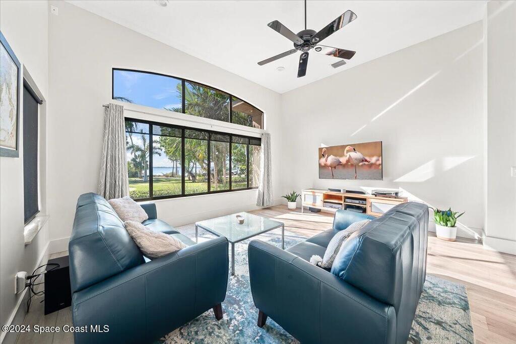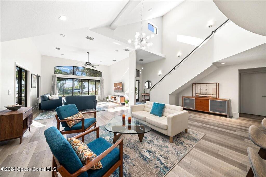 Back on the market with a new and improved price! Seize this opportunity to experience the finest in waterfront living with this updated contemporary home, perfectly nestled on one of the most unique and desirable settings in Brevard County, South Tropical Trail. Located directly on the Indian River - the wide, ocean-access intracoastal waterway - this 3-bedroom, 3.5-bath home sits on an oversized lot with 120 feet of prime water frontage.Enjoy breathtaking sunsets, world-class fishing, and endless water activities from your very own large covered dock with boat lift. The expansive open floor plan of the home is bathed in natural light, offering spectacular views of the water from nearly every room. Vaulted ceilings and generous windows enhance the airy, inviting feel of the space.The spacious master suite, located on the second floor, provides a private retreat, while an open loft area adds versatile bonus space for your personal needs.