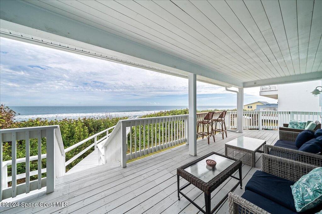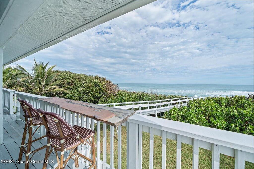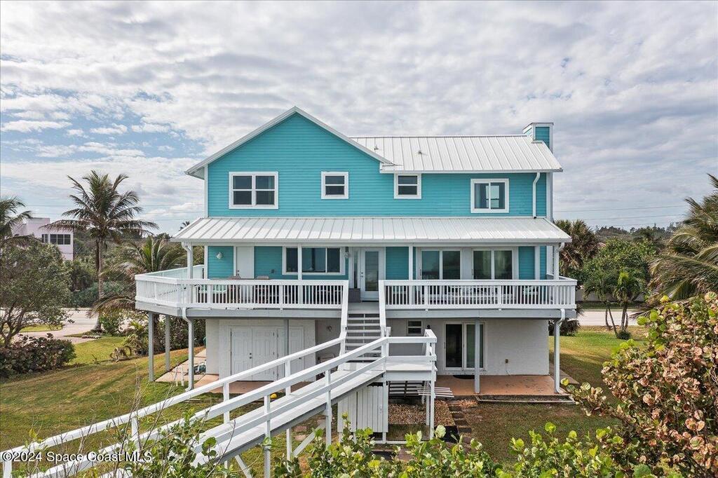 Great buy for this direct, updated oceanfront home along some of the most beautiful stretch of beaches around! Spectacular ocean views from kitchen, living areas, primary suite & 2nd bedroom. Expansive covered deck and private beach crossover. Nice high elevation, a healthy dune, new AC (4/24), newer metal roof and impact rated windows/ doors (both 2020), all help to make this a secure oceanfront investment. Current owner has also had a successful vacation rental program with the property ($85k+ gross revenue in recent years) . Reverse Osmosis community water supply but no HOA fees! This home was also featured on HGTV's Beach Hunters. Call to see today!