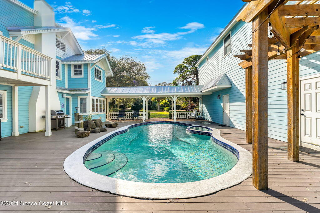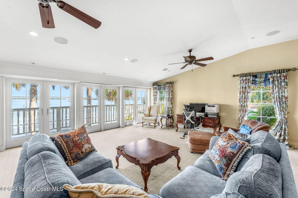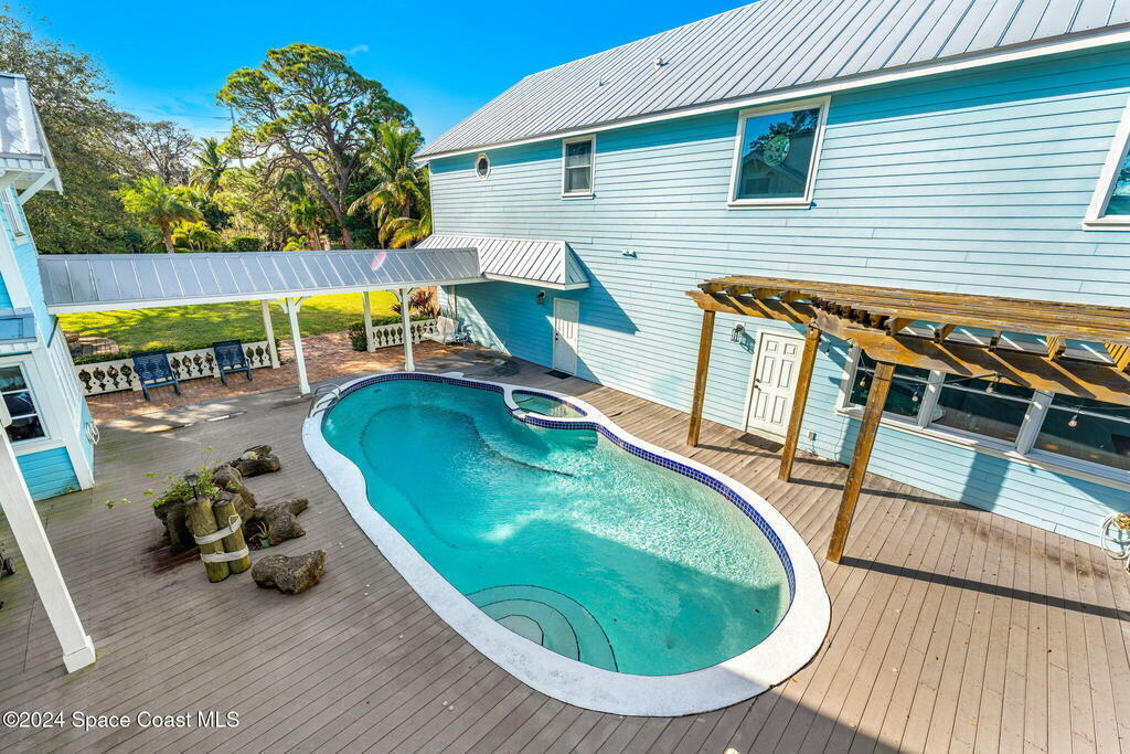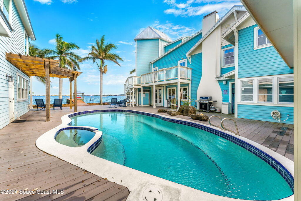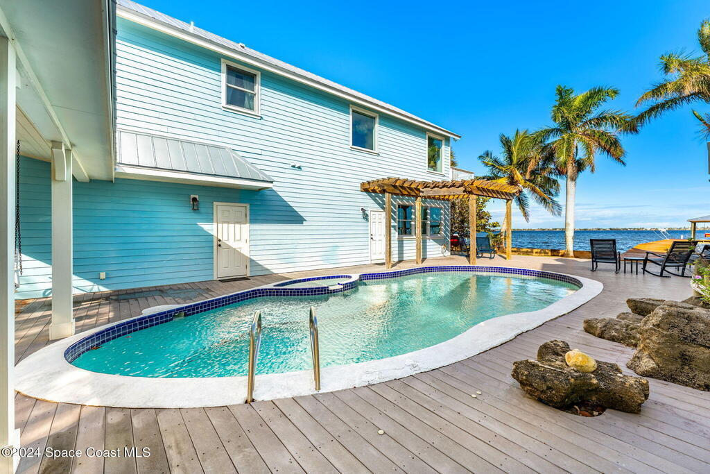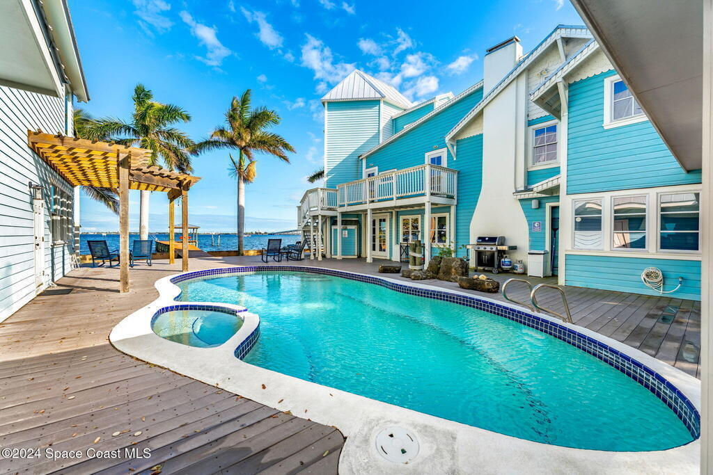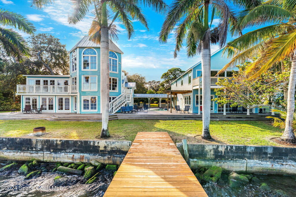 Don't miss this rare opportunity to own one of the most iconic and unique, waterfront properties in the Melbourne area. Once you pass through the gates and enter ''The Pineapple Estate'' you'll be become immersed in the natural splendor of it's Spanish Moss laden, hundred+ year old Oak trees, the historic architecture of the 5 different structures on site that that deliver over 8,400 liv sq ft , a heated pool, spectacular direct River views w/ a private dock, on approximately 200' of water frontage, and garage parking for up to 10 vehicles. The property has been both an expansive, private estate as well as enjoying a successful short term rental program. Everyone will appreciate the convenient location just minutes to the beach and all area amenities, including it being only a short stroll to all of the shopping, restaurant and night life options in the blossoming downtown Eau Gallie Arts District. Don't miss this once in a lifetime opportunity! Shown by appointment so call today !