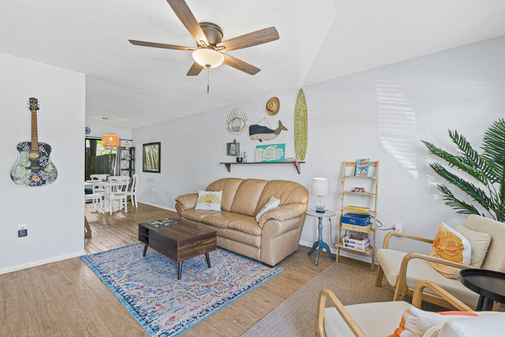 Awesome Townhouse in the only neighborhood in Cape Canaveral with beach access at the end of the street. No HOA, No Pet Restrictions, 7-day rentals, and concrete block construction. Need I say more? It's completely set up for rental or for you to move in. Great beach vibe, a spacious open floor plan for all your family and friends to visit, play, and break bread. Updated kitchen with granite countertops, stainless steel appliances, and plenty of space for cooking tools. Upstairs has two bedrooms and a full bath. The laundry is on the second floor, where it belongs. In the back is the private patio where you can grill and chill. Two parking spaces out front of the home. The beach access is at the end of the street. Shopping, restaurants, entertainment and attractions are close at hand. You snooze, you lose.