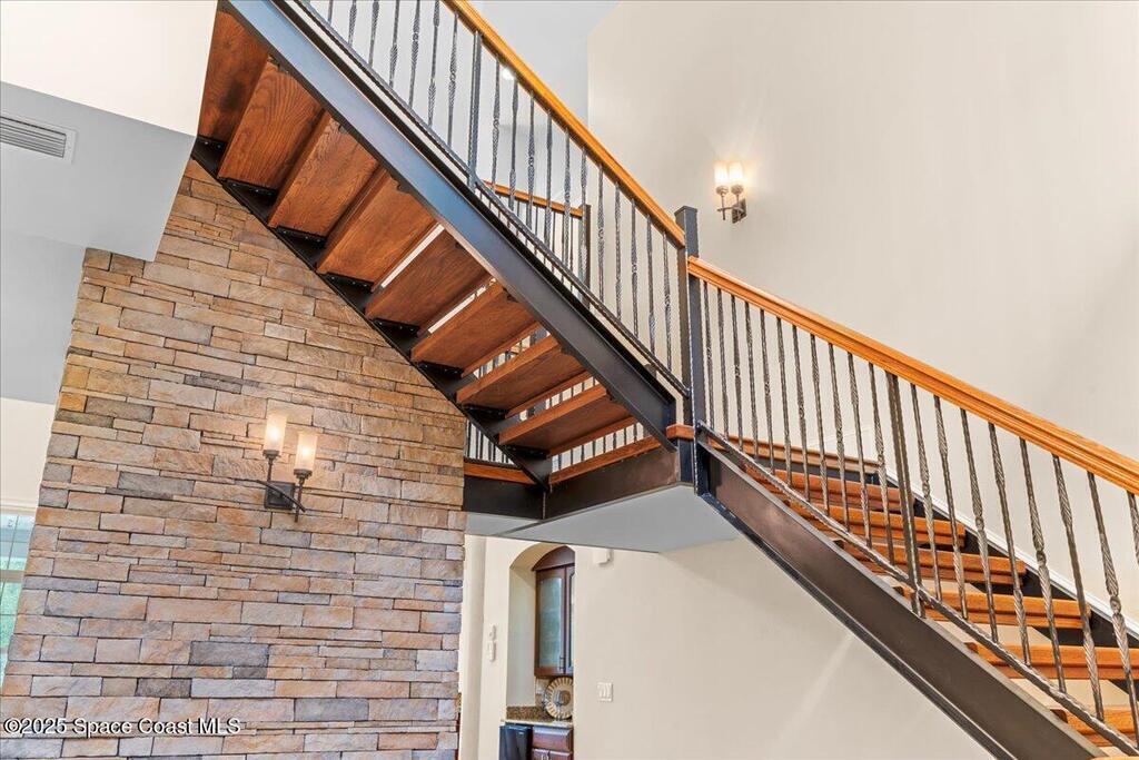 Step into a world of timeless elegance and modern luxury with this extraordinary custom-built ''Green Home'', nestled just off historic Rockledge Drive. Every detail has been crafted to blend sophistication, comfort, and energy-conscious design, creating a sanctuary where each day feels like a retreat.A soaring grand foyer with custom stonework and exquisite tile flooring welcomes you, setting the tone for the home's refined beauty. The chef's kitchen is a masterpiece, featuring a sprawling center island, dual sinks, gas range, and stainless steel appliances, flowing seamlessly into a great room with a dramatic stone-accented fireplace and a wet bar made for entertaining friends and family.Two master suites offer unparalleled privacy and comfort--the upstairs suite opens to a balcony overlooking a sparkling pool and lush backyard, inviting quiet mornings with sunlight dancing on the water. The main-level master provides effortless access and convenience, while two additional