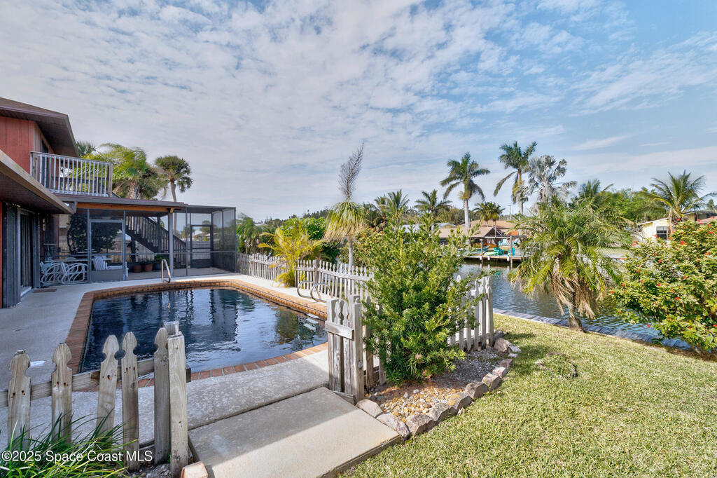 Located in the beautiful Sunnyland Beach, this paradise sits on a very private canal that is easily accessible from the Indian River. This 4 bedroom, 2 bath home also offers a living room, dining room, breakfast nook and a well designed kitchen! It boasts an oversized primary suite with it's own private balcony with a excellent view of the pool and canal. Additionally the Windows in the front of the home are hurricane rated with shutters in the rear. It's a short walk to a private beach access. The South Beach Community Center which offers yoga and fitness classes as well as pickleball courts, an indoor gym, playground and dog park is just around the corner. Bring coastal living right to your doorstep!