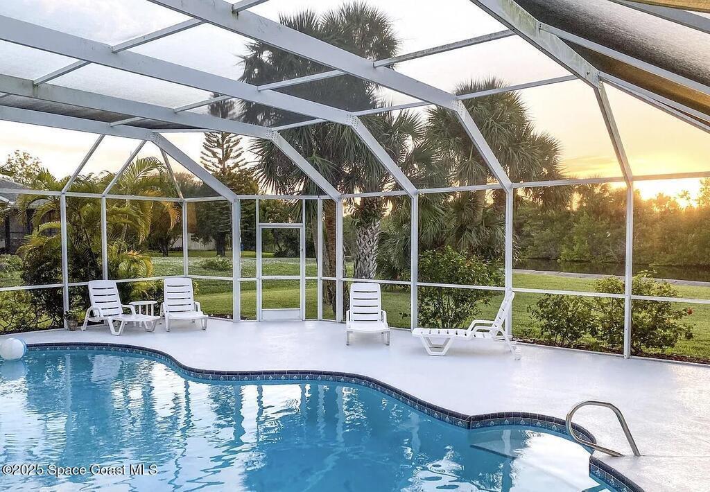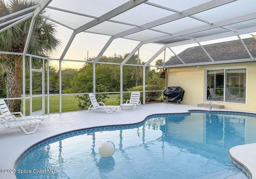 Be Wild for Awhile and recharge! Serenity awaits you at this fully furnished pool home, tucked away between the ocean, the river, and the expansive Archie Carr Wildlife Refuge. Enjoy sunrise, moonrise, and rocket launches at the beach. Then end your day with an incredible sunset from your screened in lanai overlooking pool and water. Just a short walk to the beach with a direct beach access from the neighborhood. Spacious with lots of natural light! Four bedrooms, three and a half bathrooms, two separate living rooms, an eat in kitchen and a formal dining room. Safe neighborhood with friendly neighbors. What are you waiting for?