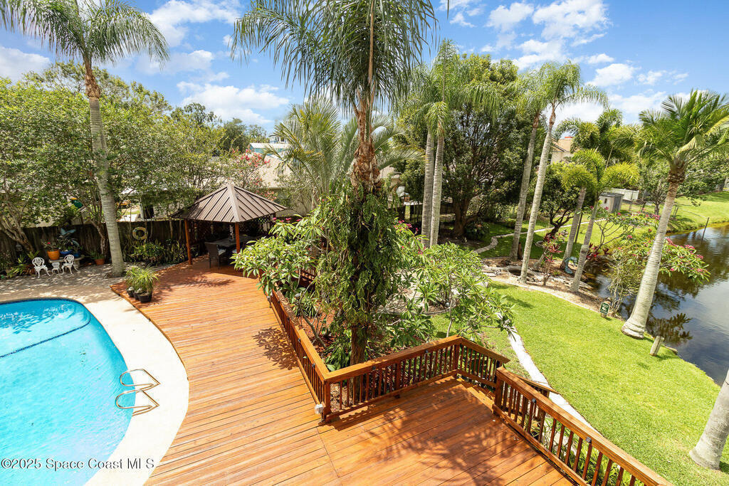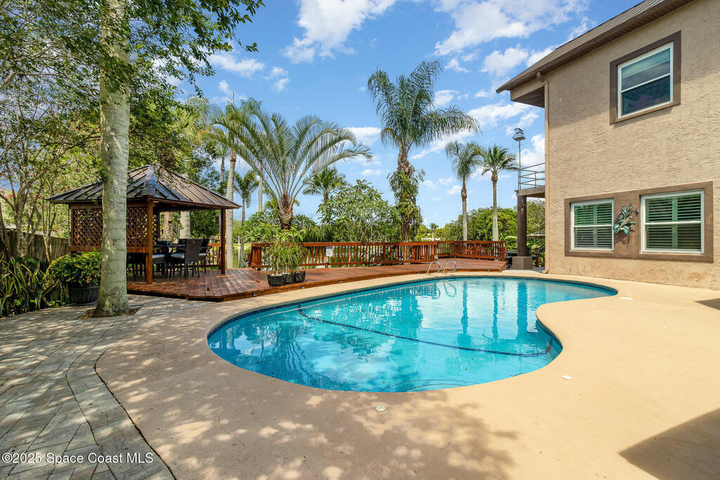 Come home to nature and comfort with this unique 5-bedroom, 3-bath property that offers the perfect balance of space and serenity. The wraparound decking provides beautiful views of the water and wildlife, while the private in-ground pool adds a refreshing touch to outdoor living.Inside, the first floor features 4 bedrooms, 2 full baths, and multiple family and dining areas that flow effortlessly into the outdoor spaces, making it ideal for gatherings or day-to-day living. The second floor is home to the spacious fifth bedroom, complete with a cozy fireplace, a third full bath, and a versatile loft space.Designed for both comfort and functionality, this home easily accommodates large families and special occasions. Whether you're relaxing by the pool or enjoying the views, this property is a peaceful retreat for your home or investment. Home is currently operating as a successful short term rental, hosting groups visiting for work and sports and being sold fully furnished.